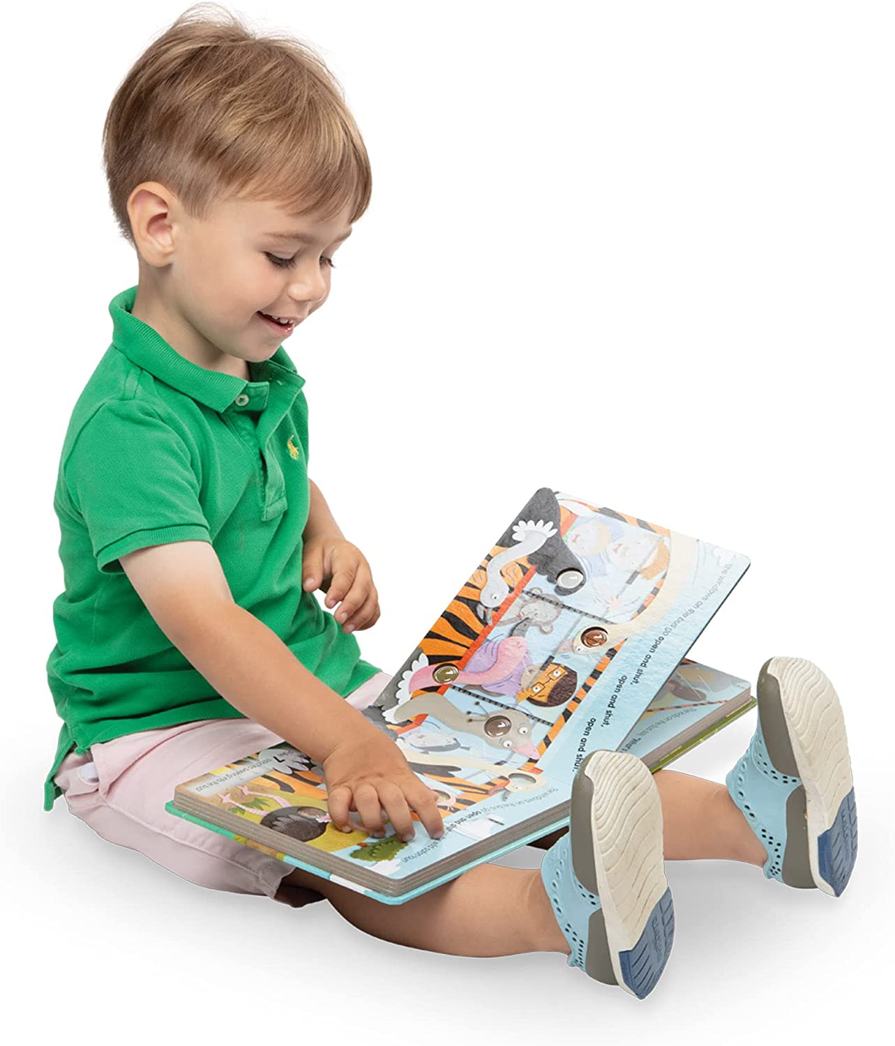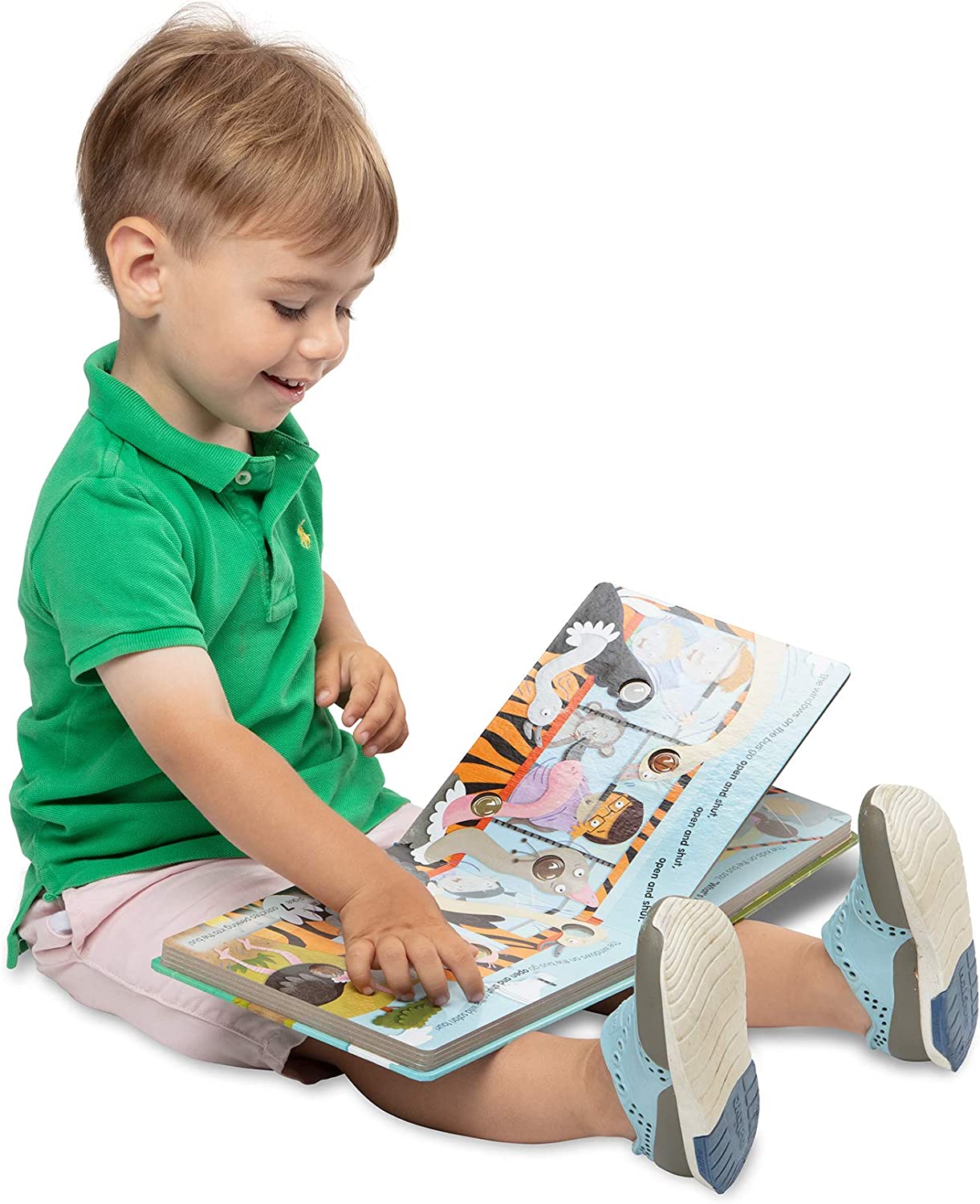 20-page interactive sturdy board book with buttons to press and “pop” on every page