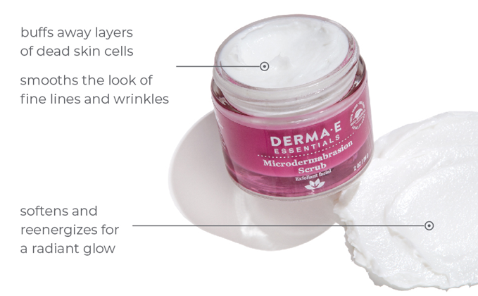 Microdermabrasion is a luxurious skin care treatment that used to be confined to dermatologist offices and high-end spas. DERMA E Microdermabrasion Scrub brings this luxury home, and has an amazing ability to transform the skin, producing superior results.This wonderful exfoliating face scrub combines Dead Sea Salt and a fine-textured crystal blend that buffs away dullness and smooths the look of fine lines, wrinkles, roughness and acne scars with gentle facial abrasion. Citrus oils in the microdermabrasion facial scrub soften, re-energize and rejuvenate dull and aging skin for healthier, more youthful radiance.Microdermabrasion products should be an important part of your skin care routine, and our microdermabrasion scrub is a gentle enough intensive therapy face treatment to use twice a week for maximum effect. Apply the exfoliating scrub to clean, wet skin and gently scrub in a circular motion for 1 minute, avoiding the eye area. Rinse thoroughly with warm water and pat skin dry. Follow the facial exfoliator with your favorite DERMA E moisturizer.KEY BENEFITS- Smooths roughness and acne scars.- Reduces the appearance of lines and wrinkles.- Gentle enough for regular use.CLEAN, ALL NATURAL INGREDIENTSDead Sea Salt detoxifies and helps exfoliate and buff away dead skin. Orange, Lime and Lemon Peel Oils help refresh and soften the skin, and antioxidant Vitamin E helps skin retain much-needed moisture. Kaolin clay helps remove impurities from the skin and absorb excess oils in order to help curb breakouts, and Grape Seed Oil, Jojoba Seed Oil and Sweet Almond Oil nourish, moisturize, soothe and condition your skin.DERMA E Microdermabrasion Facial Scrub is 100% vegan and cruelty-free, and does not contain parabens, sulfates, mineral oil, lanolin, gluten or GMOs.