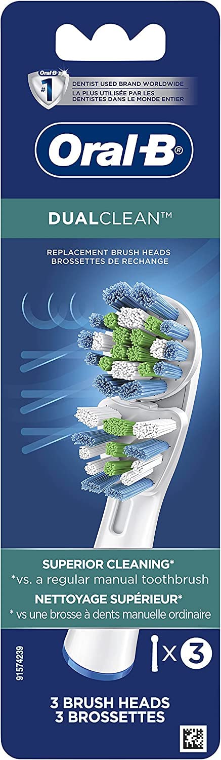 • Includes 3 Genuine Oral-B Dual Clean Electric Toothbrush Replacement Brush Heads