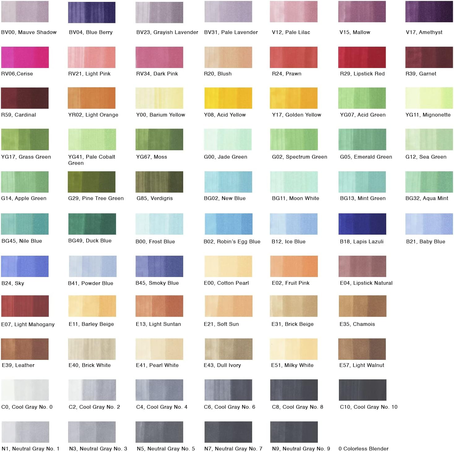 - This 72 pc Set B includes a well-balanced variety from every color family. All of these curated colors are perfect for general illustrations and manga.
