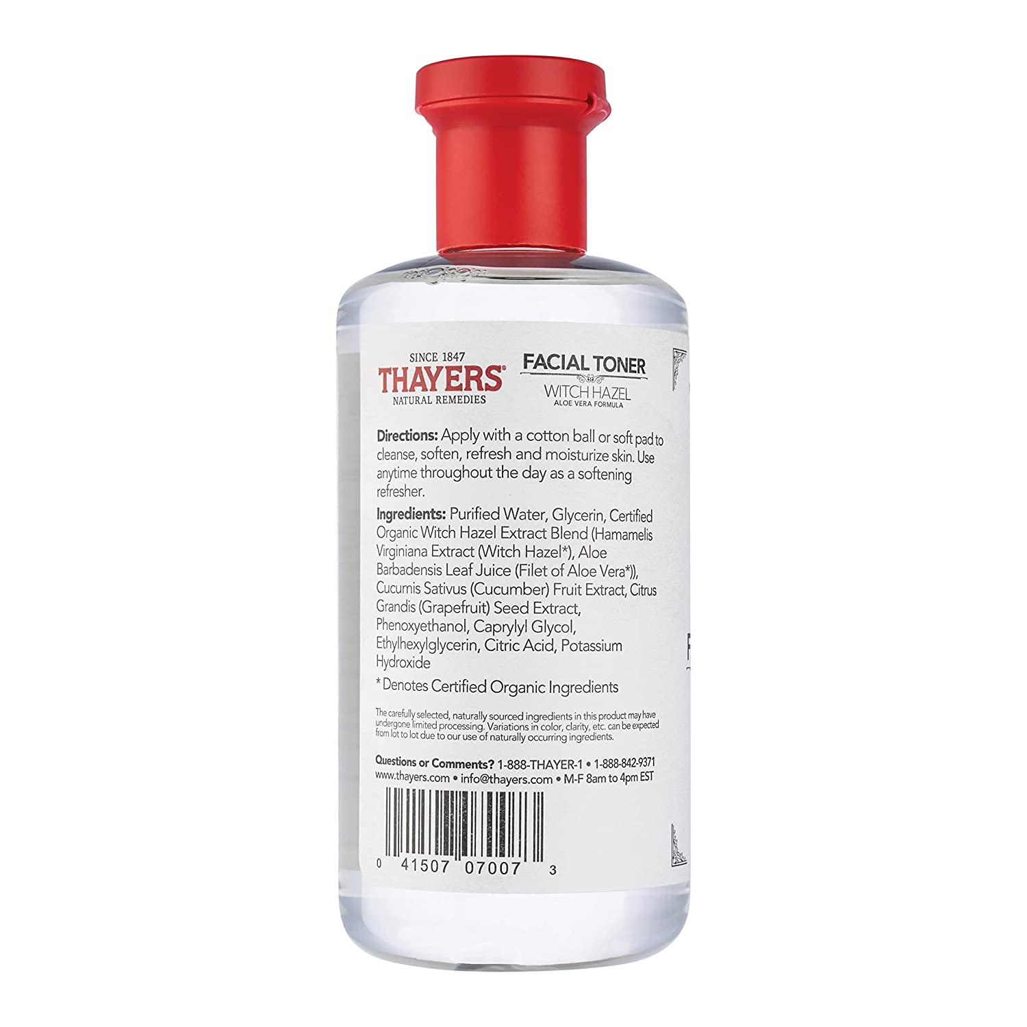 98 Percent Natural Origin Ingredients: Made with certified organic Witch Hazel grown and harvested exclusively for Thayers on a family farm in Connecticut, and certified organic Aloe Vera