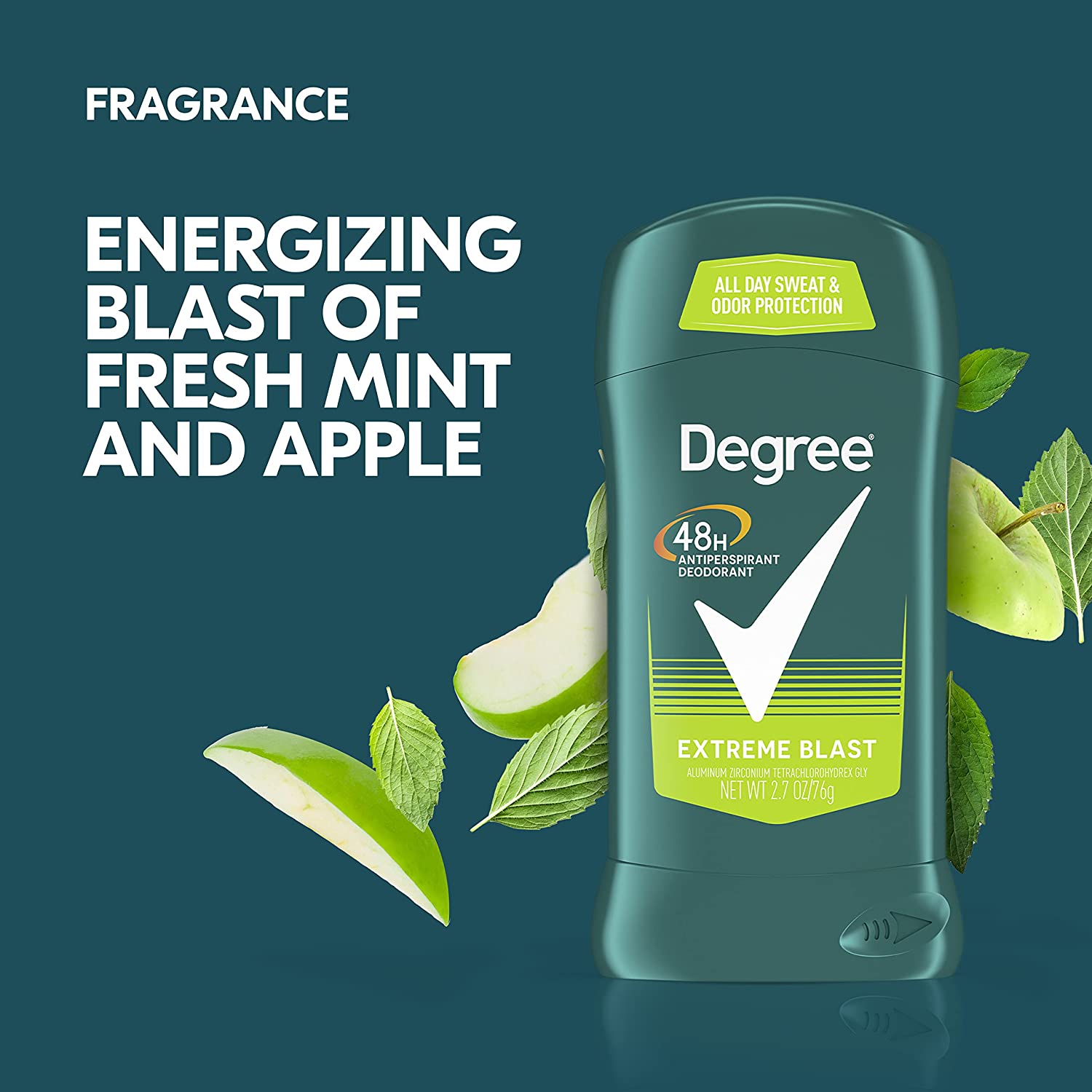• INVIGORATING SCENT: Stay fresh longer with this antiperspirant for men. Degree Men Extreme Blast Antiperspirant Deodorant features an exhilarating scent to keep you feeling energized