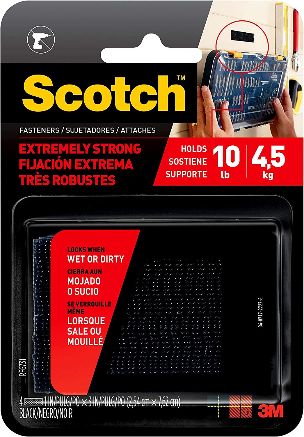 Scotch Mounting, Fastening & Surface Protection RF6731 Interlocking Fasteners 1 in x 3 in, Strips, 1"x3", Black, 2 Count