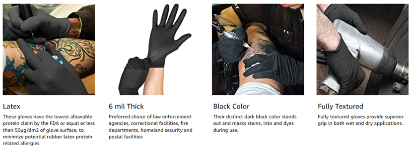- 6 mil finger thickness, their stretchability, flexibility and dexterity from natural rubber latex material