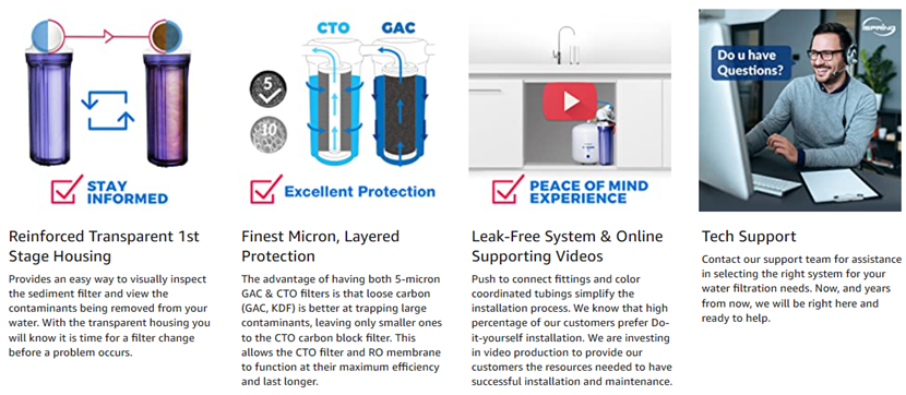• Water filtration system with Premium quality components ensure highest reliability and low maintenance for many years to come. Clear see-through 1st stage housing makes filter inspection a snap.