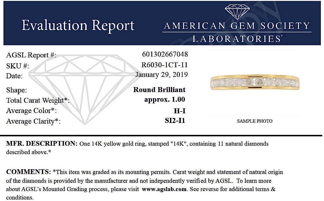 Diamond Clarity: SI2-I1 ; AGS Certified. Certificate Included