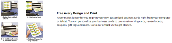 Get professional quality business cards without having to pay the professionally printed price. Avery 8859 Clean Edge Business Cards includes 200 customizable business cards made from premium glossy cardstock (matte on back) with weight of 83lbs / 227gsm, and offers a high-quality blank canvas optimized for printing vibrant colors and sharp, clear text. If you need customizable business cards, customer loyalty cards, appointment reminder cards or more, these 2" x 3.5" cards are an exceptional way to stand out from the crowd. These white business cards have innovative Clean Edge technology for quick and easy separation, giving you the cleanest, smoothest edges of any business card on the market. Also, proprietary Avery Sure Feed technology helps reduce misalignments, minimize paper jams, and avoid wasted projects when printing on your inkjet printer. Whether you have your own design or you're creating one from scratch, take your brand or business to the next level with Avery Design & Print Online, which makes it easy to create and print double-sided customizable cards from your own home or business. The free browser-based software has everything you need to design business thank you cards, appointment cards, rsvp cards for weddings, reward cards and more. Try it out today on the Avery website and print at home or in the office on your inkjet printer.secures your card or insert in place, while the clear plastic badge window allows unobstructed visibility without needing to remove it from the holder. Each badge holder is pre-punched to accommodate the included 36" non-elastic neck cord or other attachment devices like clips, lanyards or reels (other attachments not included). These badge card holders are also compatible with Avery Badge Inserts 5390 and 5392 (inserts sold separately), making them great for custom name tags, name tags for kids and more. The size is also perfect to use as vaccine card holders (vaccine card sizes may vary, so please measure your card first to confirm fit). Item comes with 100 plastic badge holders and 100 neck cords.
