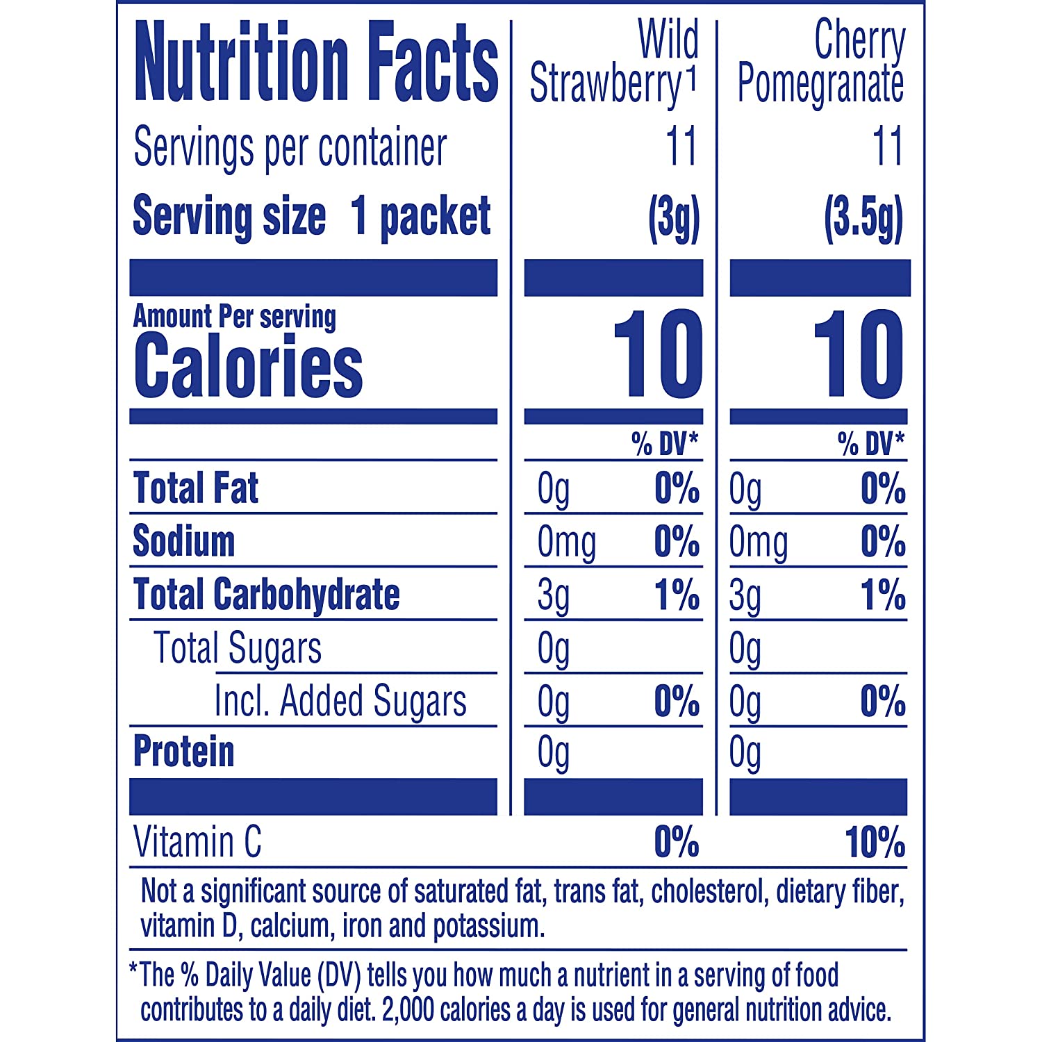 Each variety pack includes 11 lemonade, 11 cherry pomegranate, 11 raspberry lemonade and 11 wild strawberry with caffeine drink mixes