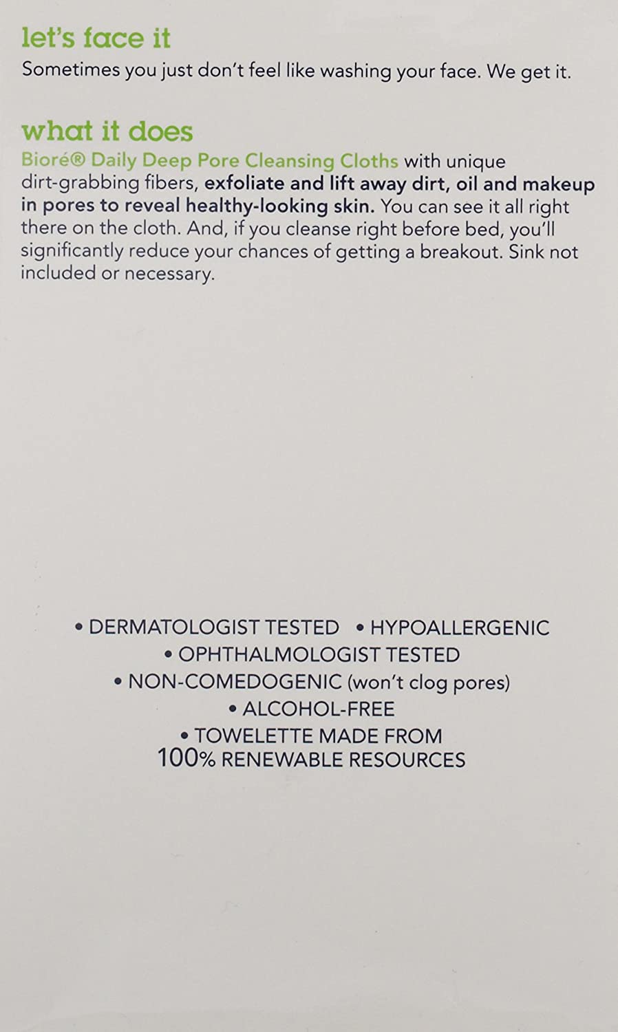 DESIGNED FOR DAILY USE - Bioré Cleansing Cloths are dermatologist tested and designed for daily use
