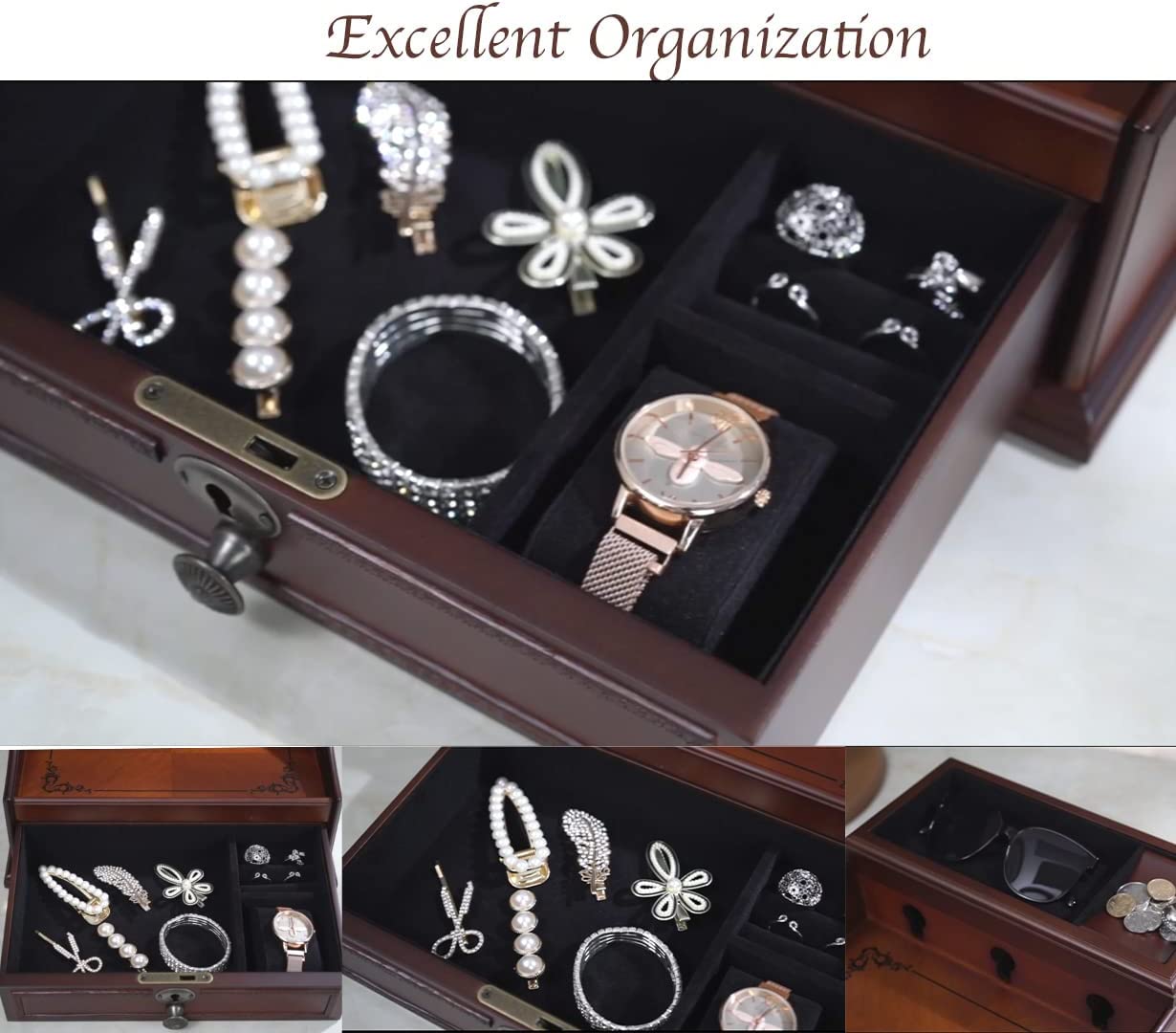 Arolly Wood Finish Valet Charging Station Multi Device Cord Organizer with Pull Out Drawer Compatible with iPhone, Samsung, and other Smartphones, Can Store Watches, Jewelry and more