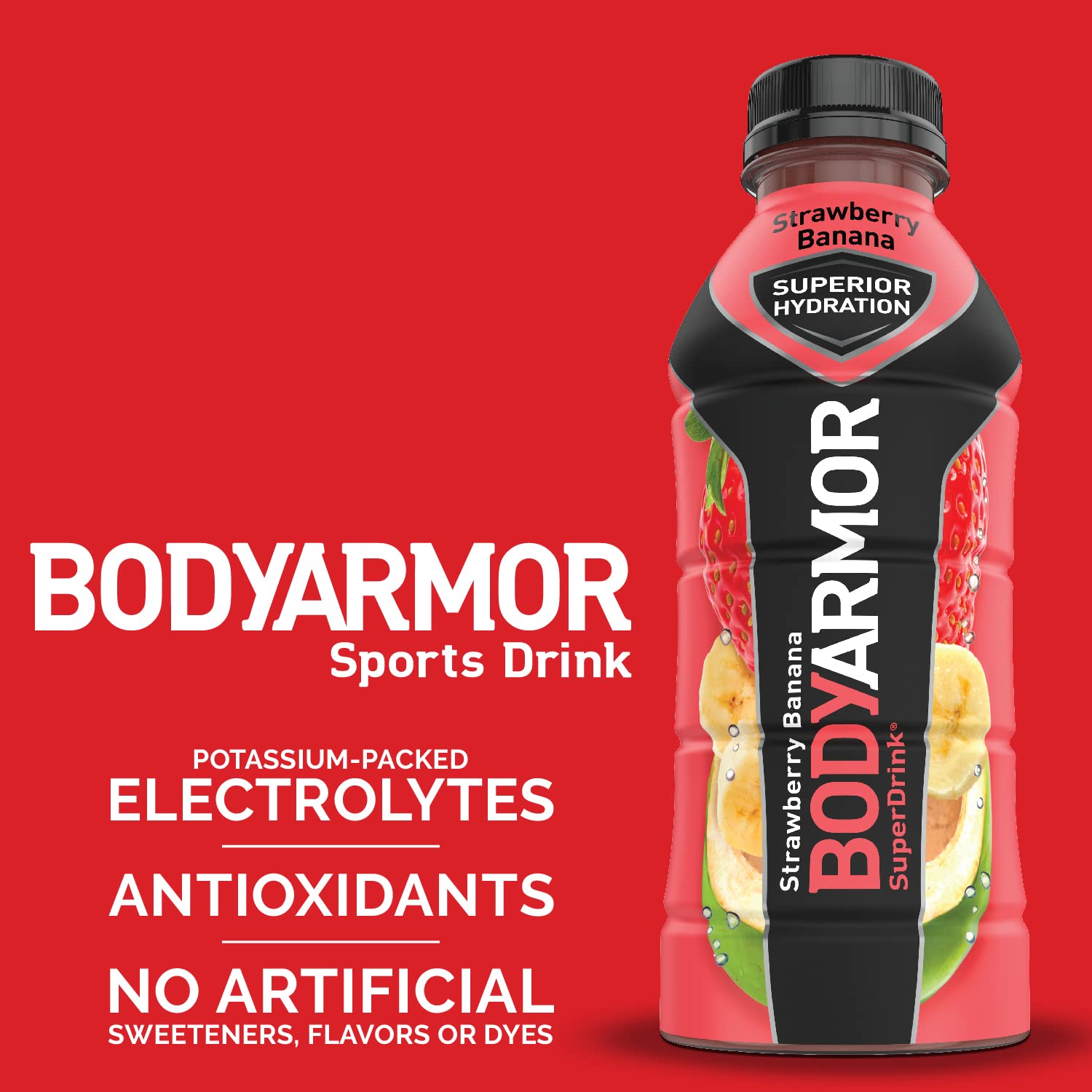 BODYARMOR Sports Drink Sports Beverage, Strawberry Banana, Natural Flavors With Vitamins, Potassium-Packed Electrolytes, Perfect For Athletes, 16 Fl Oz (Pack of 12)