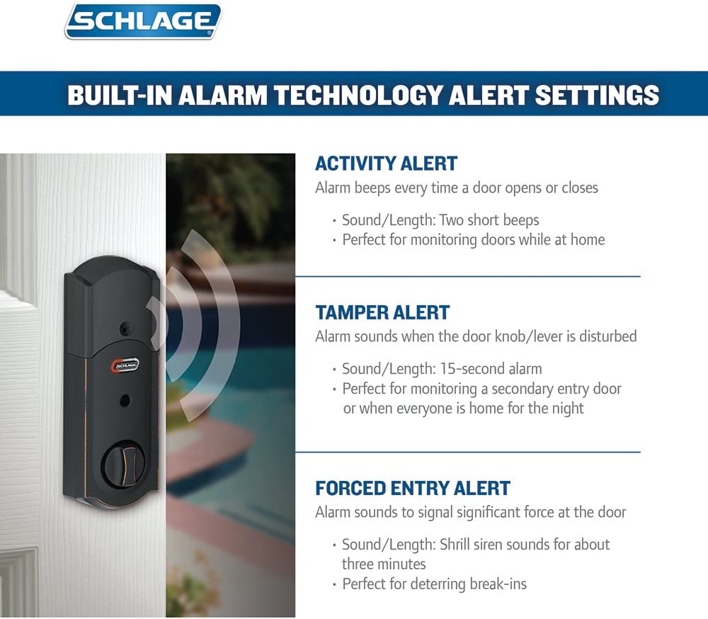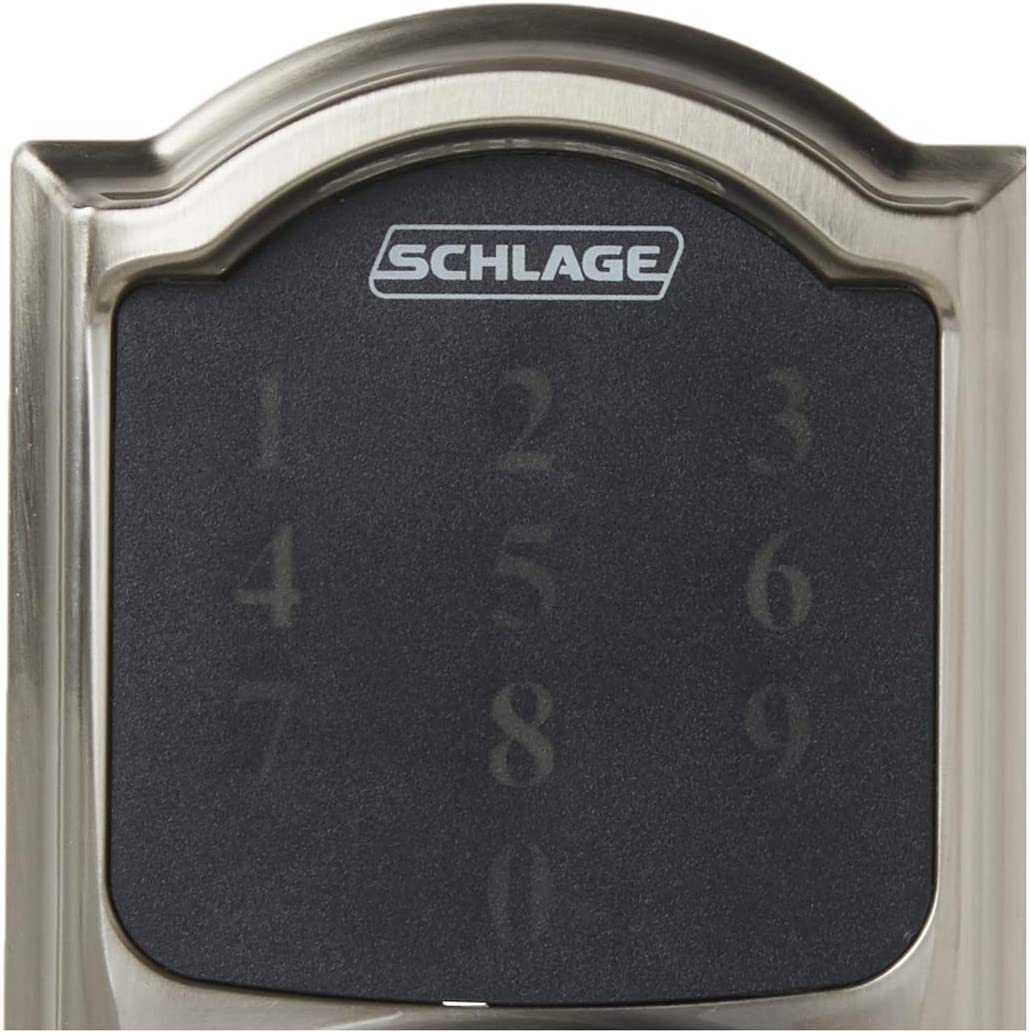 SCHLAGE Z-Wave Connect Camelot Touchscreen Deadbolt with Built-In Alarm, Satin Nickel, BE469 CAM 619, Works with Alexa via SmartThings, Wink or Iris