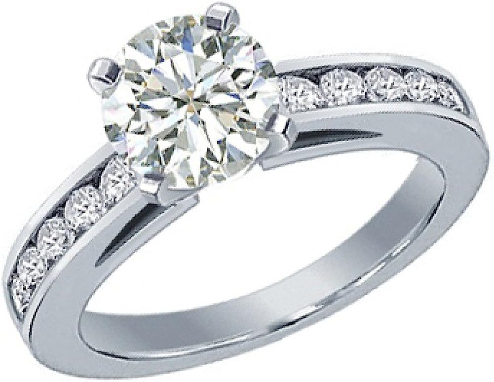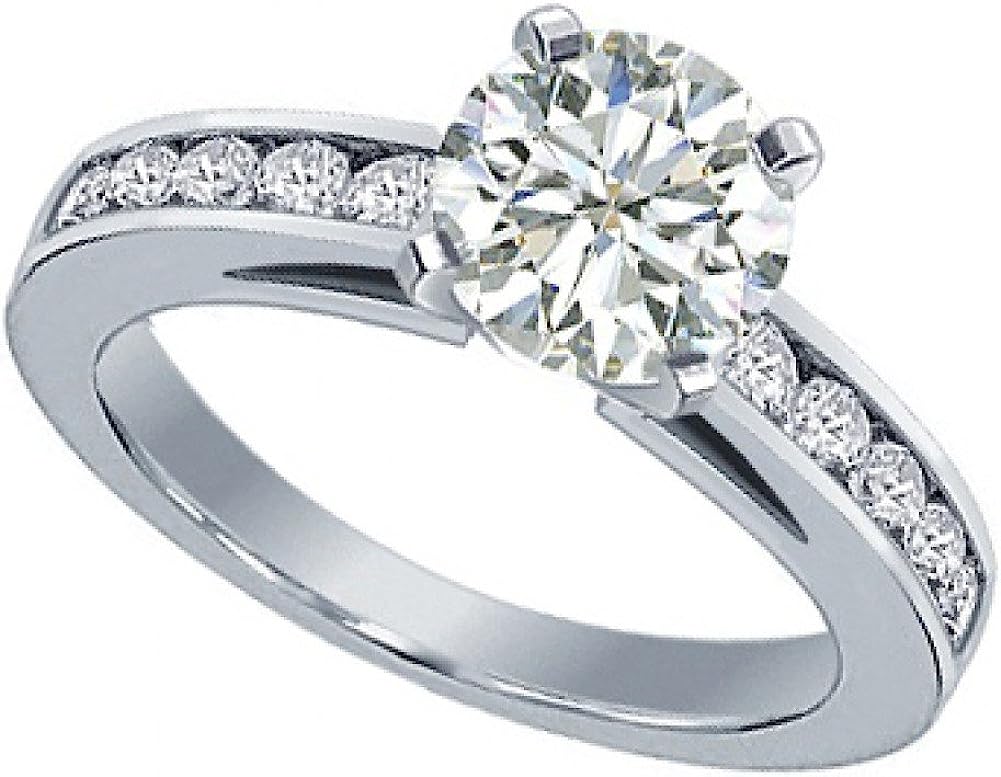 Madina Jewelry 1.50 ct Ladies Round Cut Diamond Engagement Ring in Channel Setting Platinum