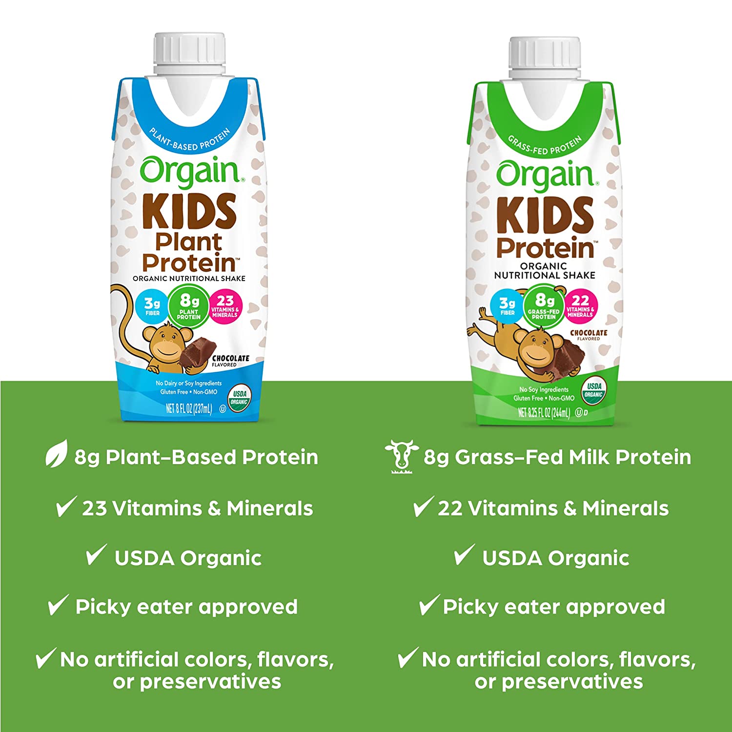 • Includes 12 (8.25 ounces) ready to drink Orgain Kids Protein Organic Chocolate Nutritional Shakes