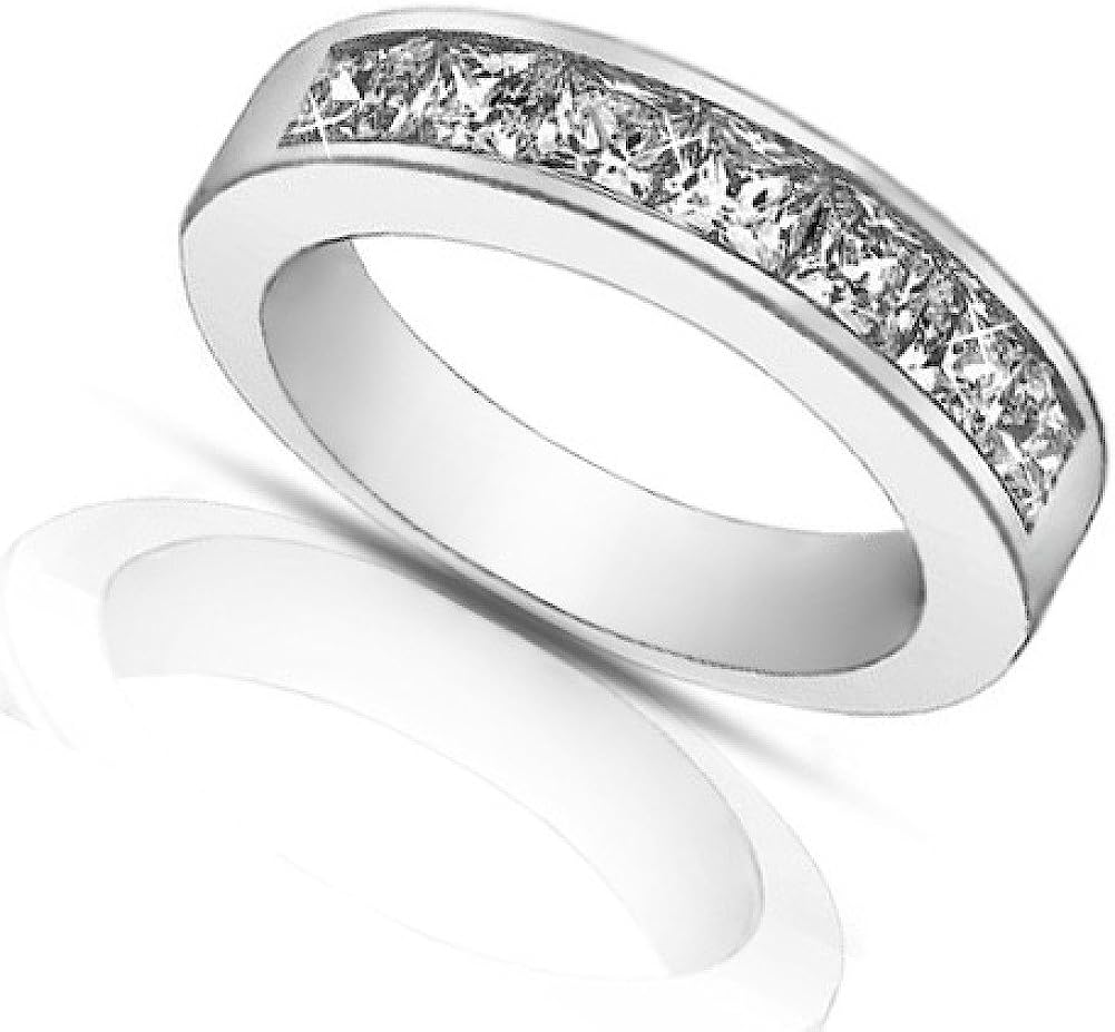 Madina Jewelry 1.50 Ct Ladies Princess Cut Diamond Wedding Band Ring in 14 kt White Gold