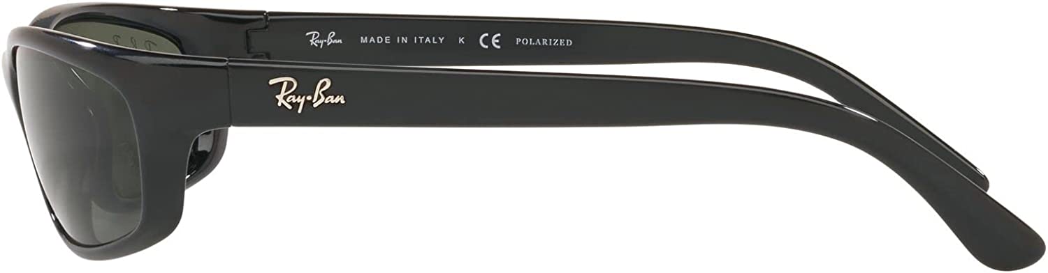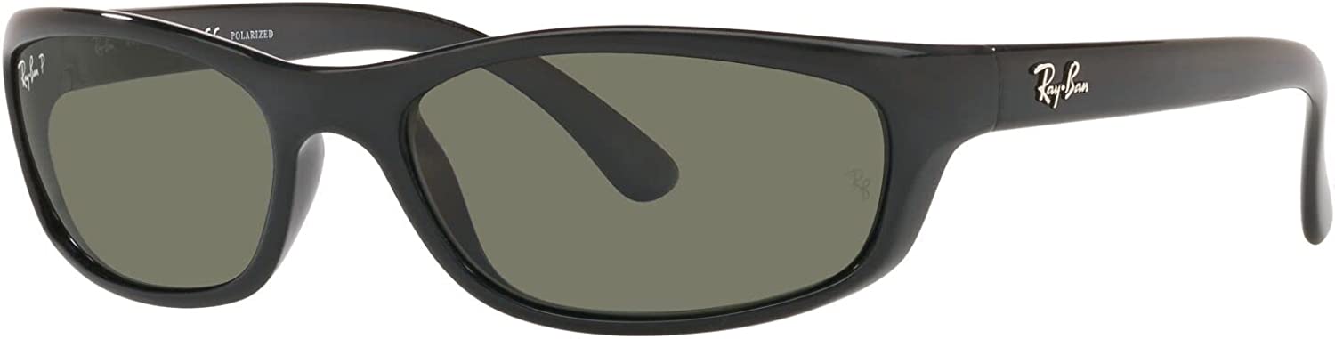 Ray-Ban Men's RB4115 Rectangular Sunglasses, Black/Polarized Green, 57 mm