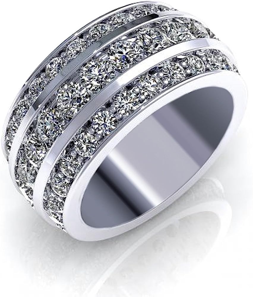 Madina Jewelry 3.00 ct Ladies Three Row Round Cut Diamond Anniversary Wedding Band in Platinum