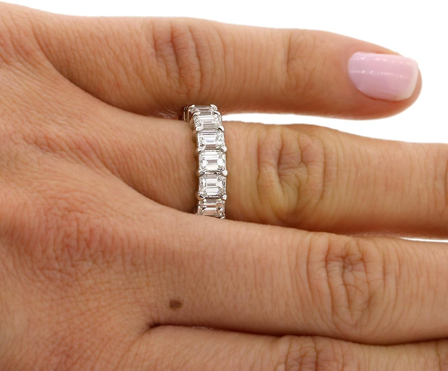 Madina Jewelry 5.00 ct Emerald Cut Diamond Eternity Wedding Band Ring in 14 kt White Gold