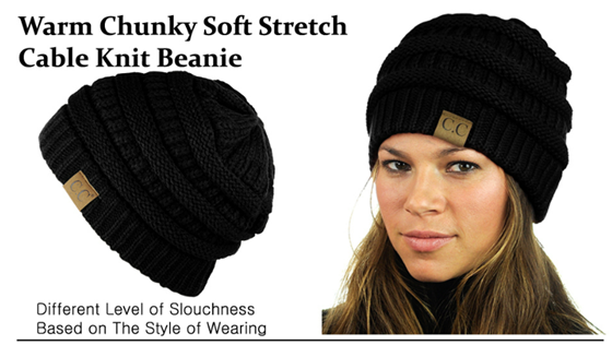 C.C Trendy Warm Chunky Soft Stretch Cable Knit Beanie Skully