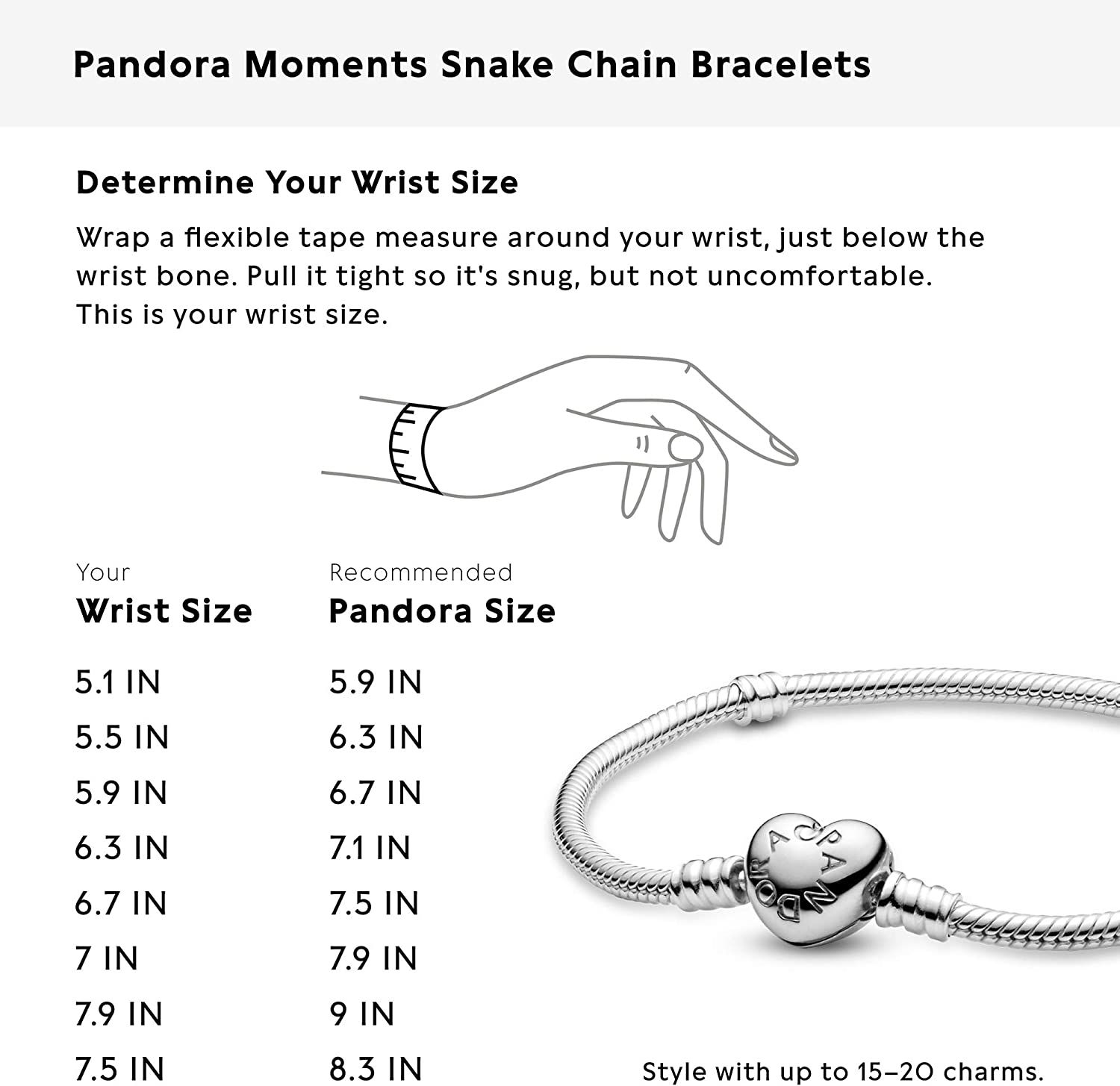 Set your heart a-flutter with this romantic version of Pandora's bestselling charm bracelet. Hand-finished with a heart-shaped clasp, this snake chain bracelet looks stunning on its own but even better adorned with your favorite Pandora charms and clips. Layer it with contrasting Pandora chain bracelets for a chic, multi-layered look.