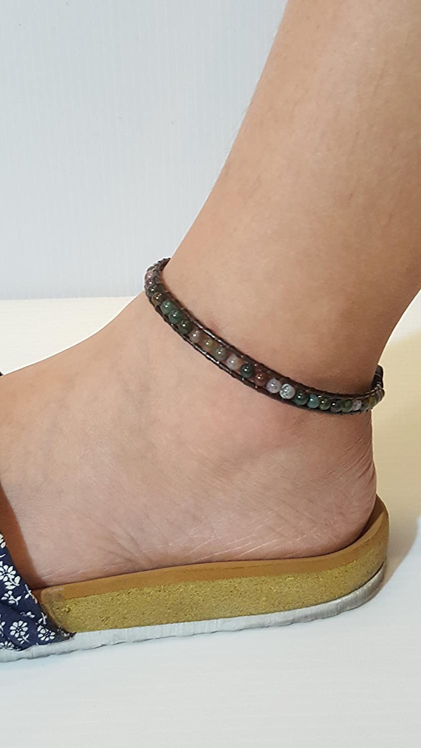 A beautiful Jasper Stone anklet with charms woven with Leather cord.Cute and Bohemian Style.Made from Jasper Stone and leather cord. This gorgeous anklet is perfect for any occasion with the addition of a charm! I use ONLY quality Stone Bead and A great unisex Anklet for that girl or guy. Kindly Note: 1.All these items are handmade so the size of the actual item you received could be slightly different. 2.All natural stones are different and due to photography lighting effects and editing, Due to the quality difference between different monitors, there could be slight differences in the color of the pictures and the actual item.