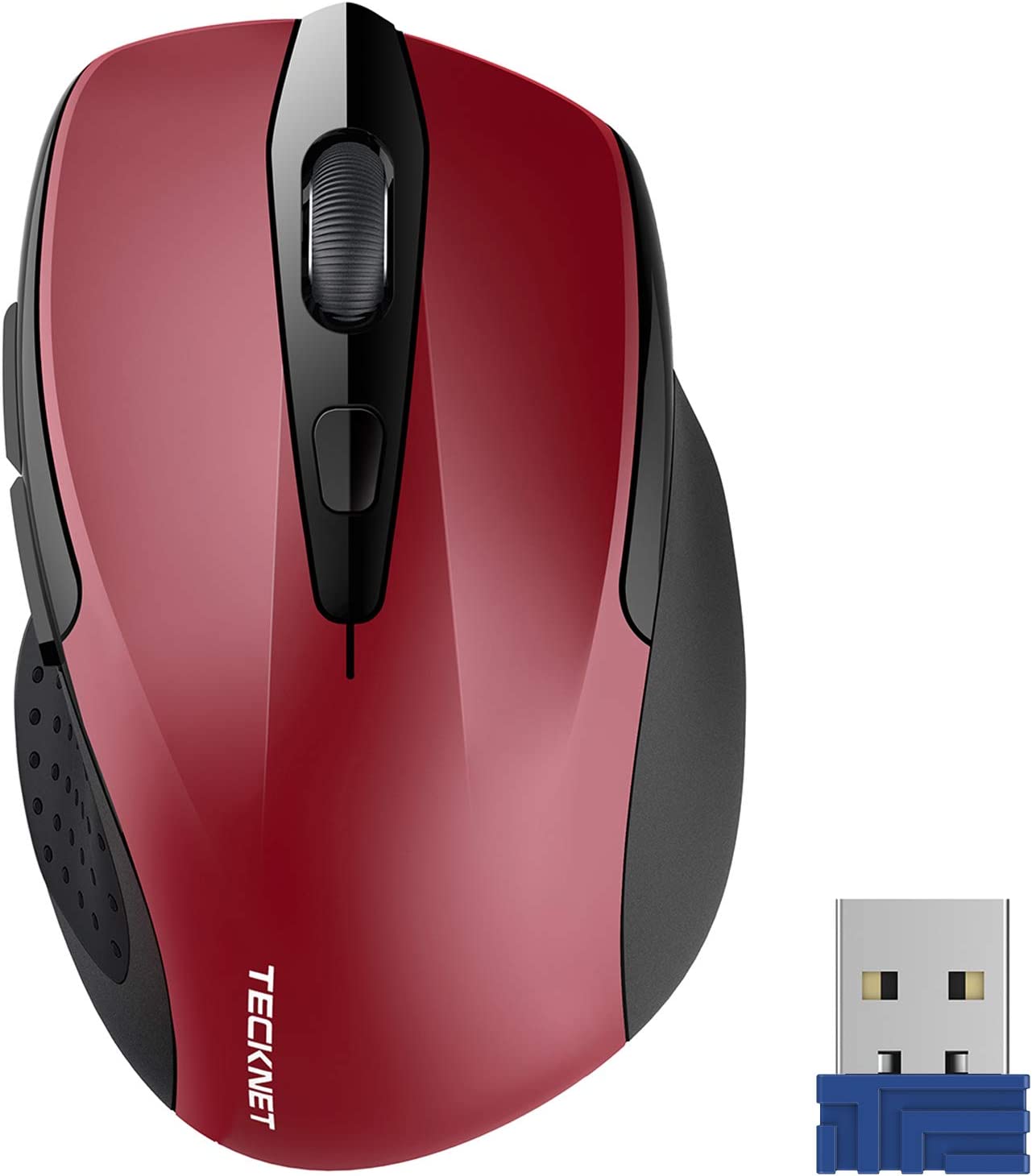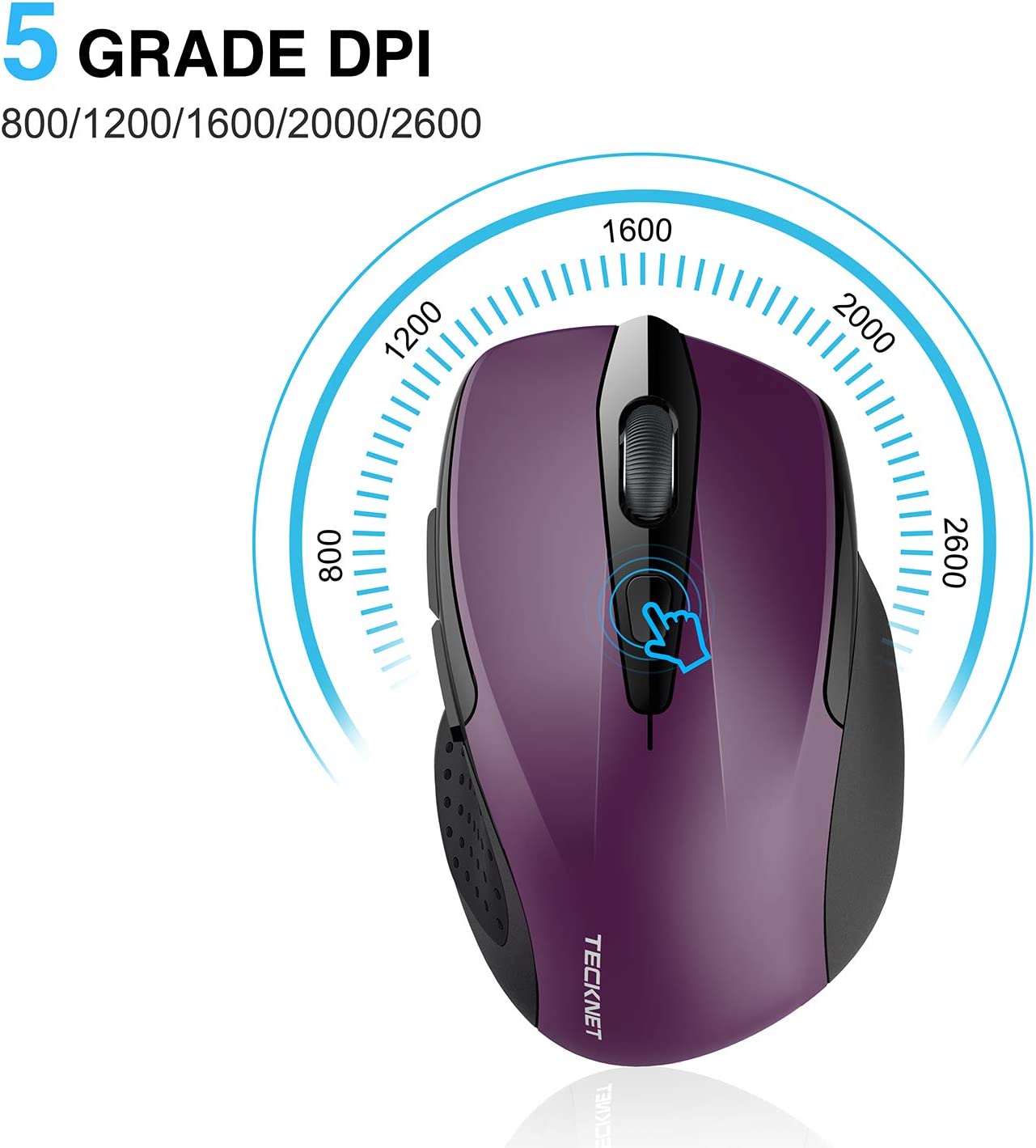 TECKNET Wireless Mouse, 2.4G Ergonomic Optical Mouse with USB Nano Receiver for Laptop, PC, Computer, Chromebook, Notebook, 6 Buttons, 24 Months Battery Life, 2600 DPI, 5 Adjustment Levels