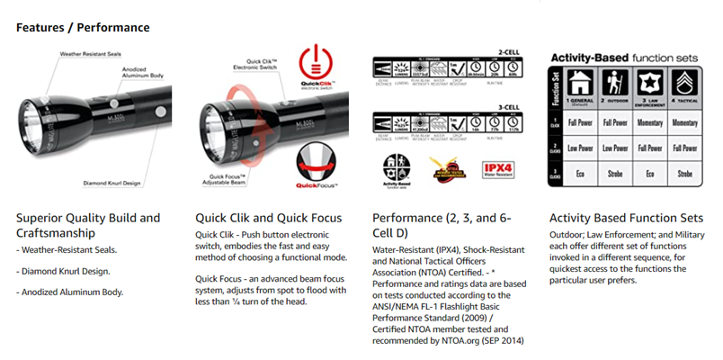 | Included Components | One Maglite ML300L 6-Cell D LED Black Flashlight |