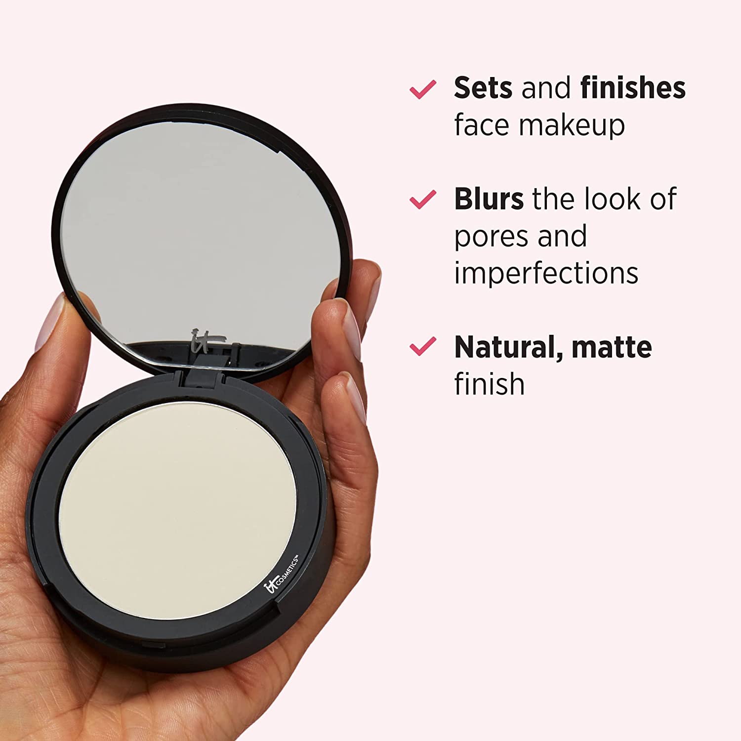 IT Cosmetics Bye Bye Pores Pressed Finishing Powder - Universal Translucent Shade - Contains Anti-Aging Peptides, Hydrolyzed Collagen & Antioxidants - 0.31 oz
