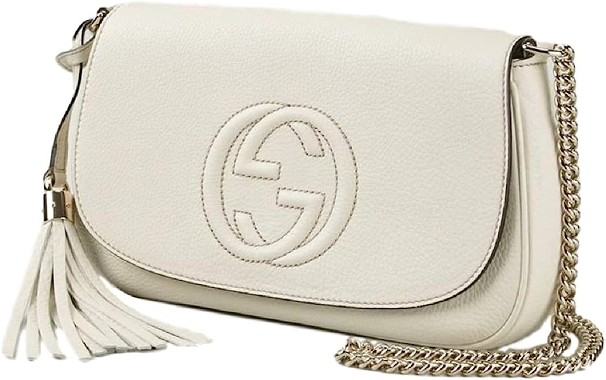 This beautiful embossed ivory crossbody is the perfect bag for any everyday look. The color makes it easy to match everything in your wardrobe and the classic embossed Gucci logo makes it a complete classic piece for any handbag collection. This bag is light weight and simply perfect.