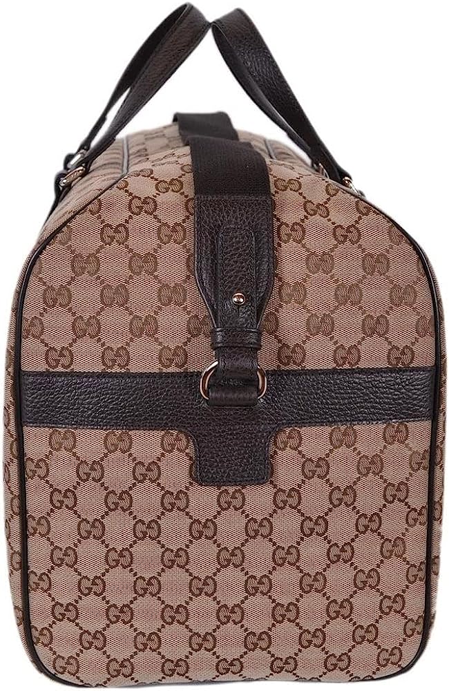 • A favorite Gucci travel piece this large beige and brown canvas Gucci GG canvas duffle bag will make your next trip a breeze. This roomy luggage piece has room for clothes, shoes, and toiletries. Model 610105