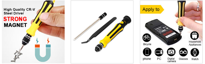 • 45 in 1 mutil function precision screwdriver set,easily interchangeable.