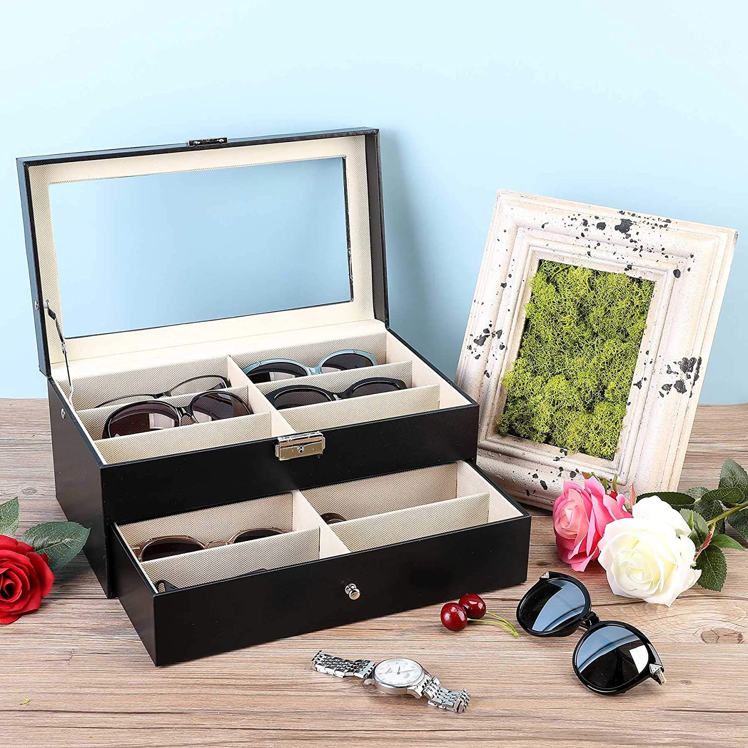 Easier to Pick A Style ----- Transparent acrylic top allows you effortlessly to see through the box, making it super handy to pick a pair of glasses or watch to match your outfit