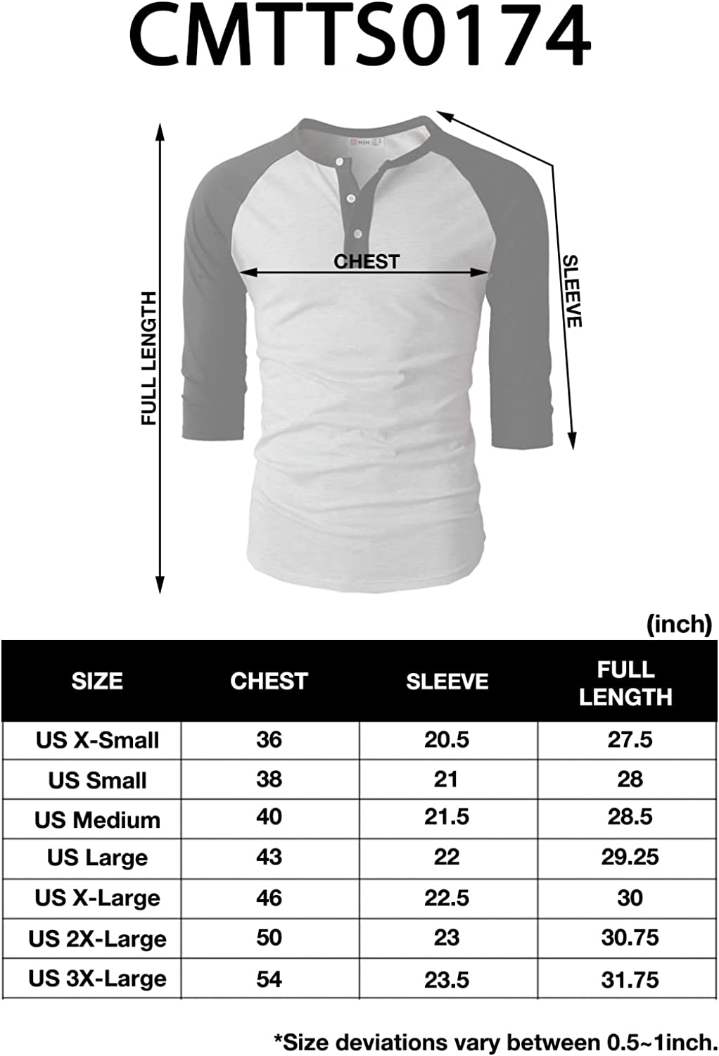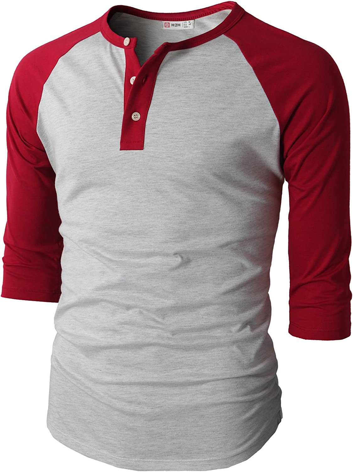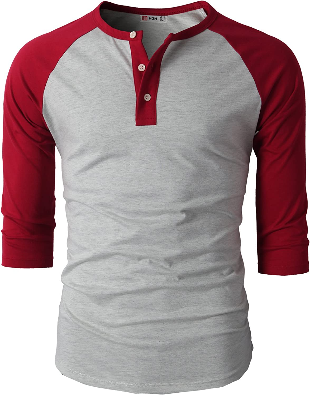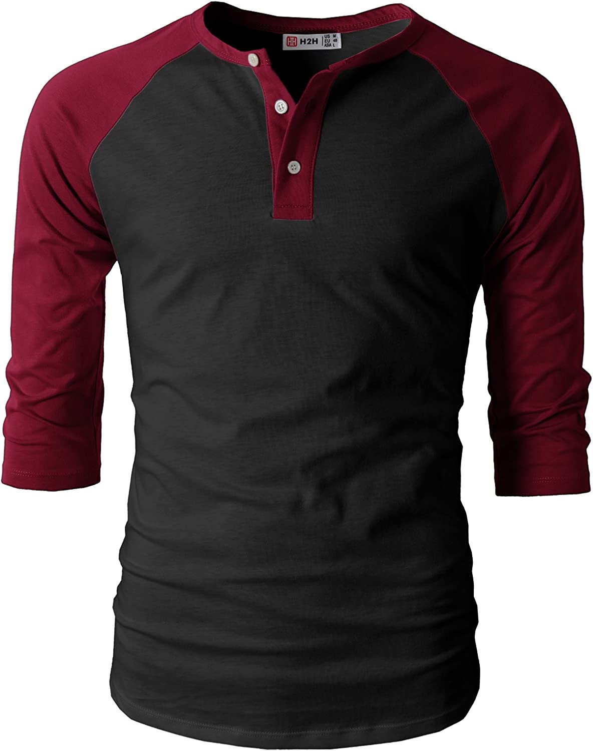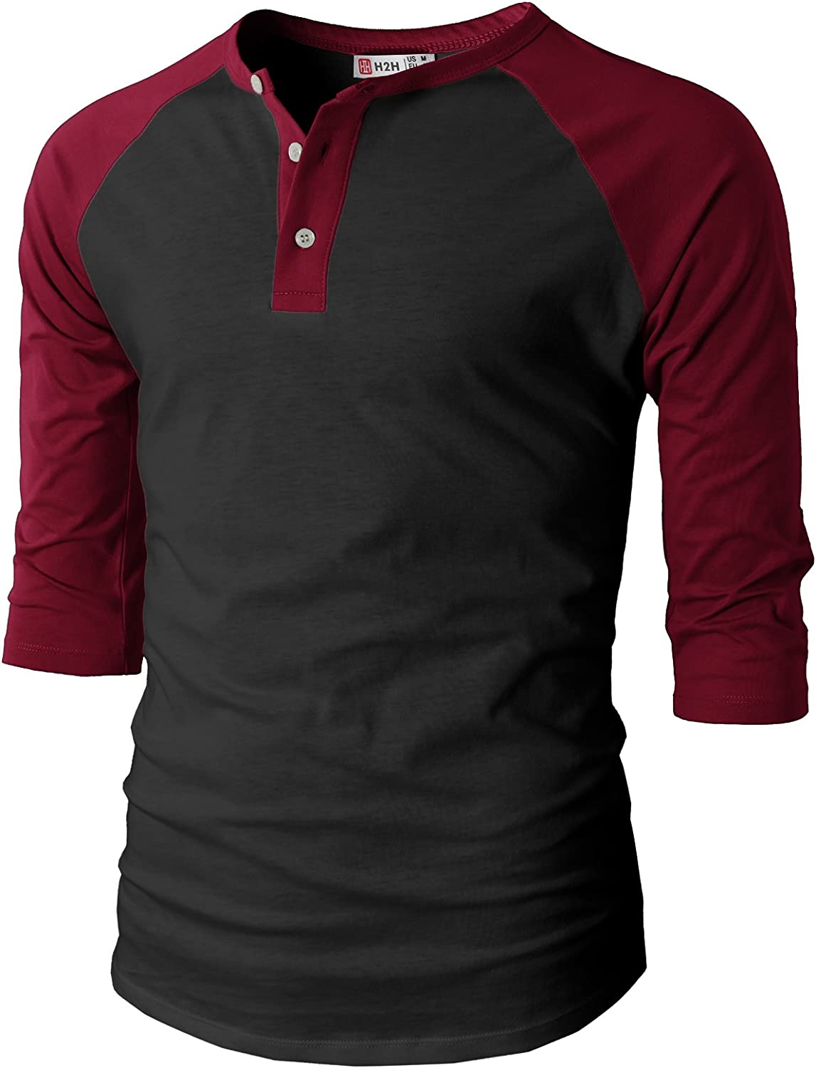 H2H Mens Casual Slim Fit T-Shirts Henley Shirts Raglan Long & 3/4 Sleeve Jersey Baseball T Shirts