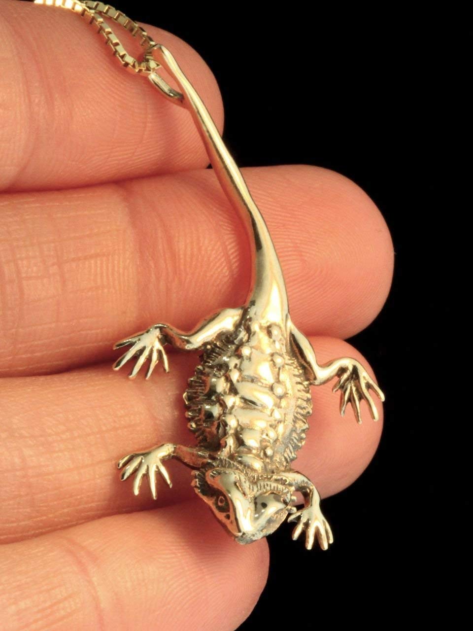 Bearded Dragon Charm Necklace 14k Gold Reptile Jewelry