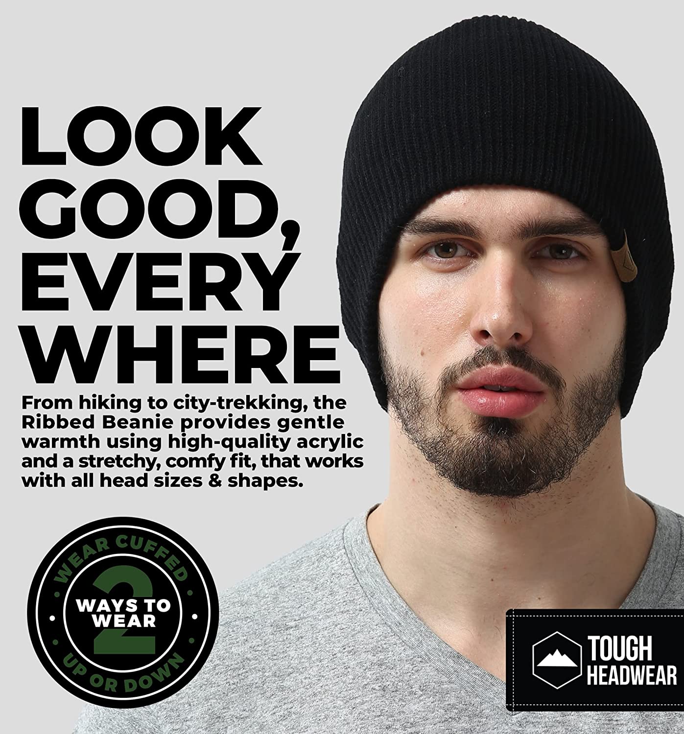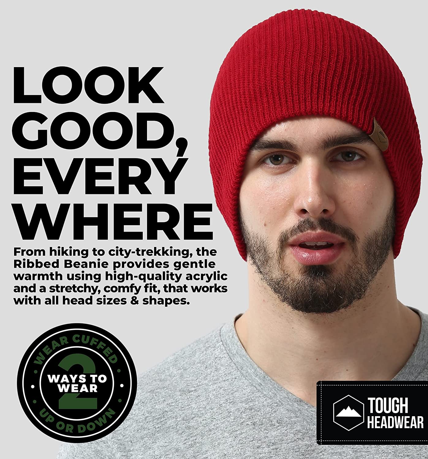 • RIBBED FOR PERFECT FIT: Leave your beanie fit struggles behind! The premium beanie men love features a ribbed design that stretches to fit all noggins–yes even the large ones. Our one-size-fits most beanie hats for men and women has your active lifestyle in mind, with 4-way stretch, so you can stay comfy all day long. Sized at 8” (21cm) width by 9” (23cm) tall, for both men and women.