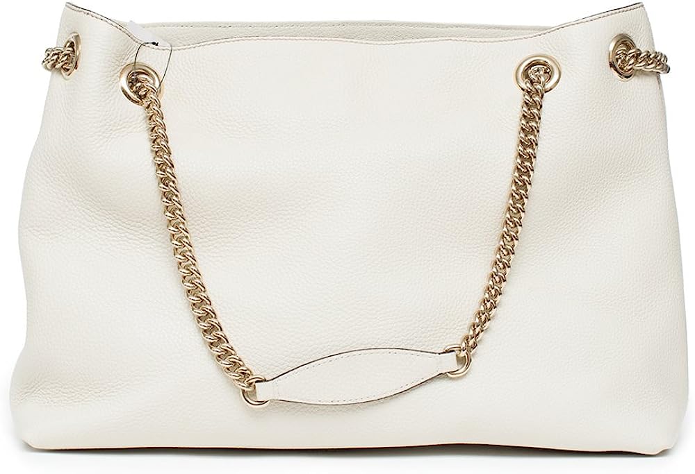 The Gucci Soho Chain Hobo Bag is a medium size shoulder bag with double chain shoulder straps. Featuring a roomy interior with pockets, detachable tassel detail, light gold hardware, and an embossed interlocking GG on front.