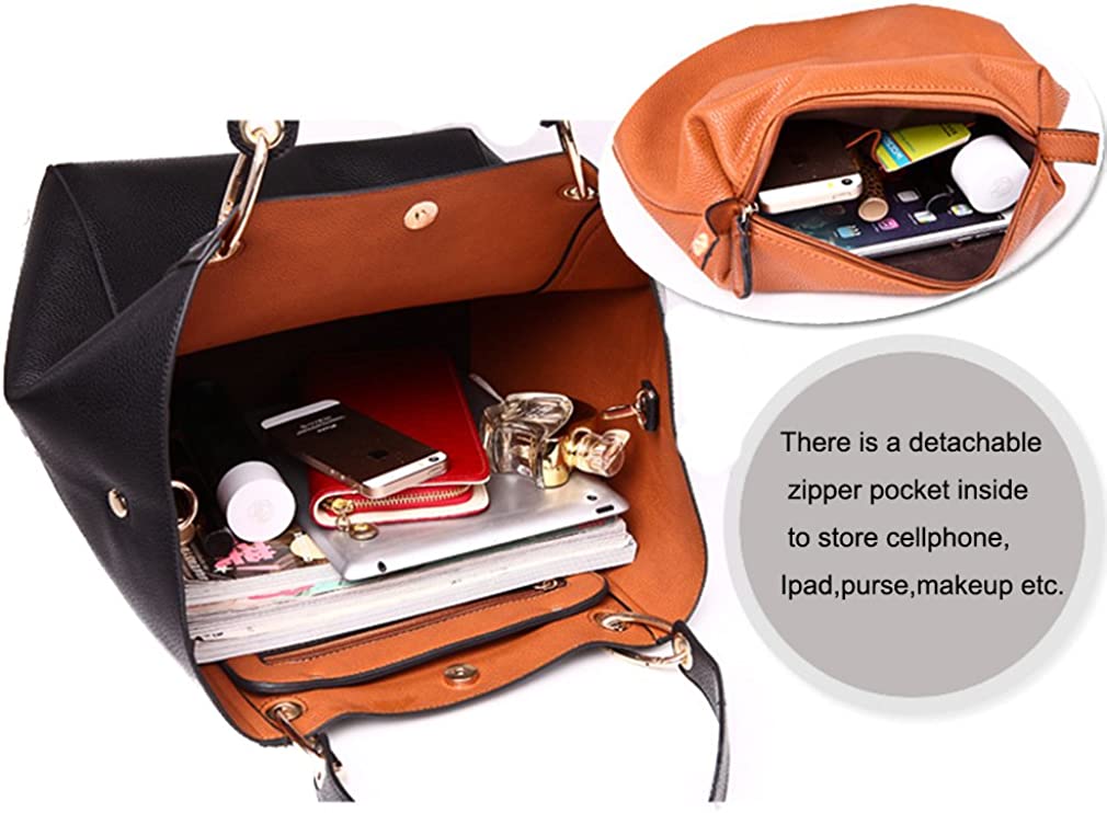 • ?【 DETAILS】? The golden accessroies can well highlight its personality design,which can be used in any occasions.The magnetic buckle with strong suction force are used to well close the bag. There is a detachable zipper pocket inside to store cellphone,purse,makeup etc.The fixed small side zipper pocket can be used to put some small items,such as coins,keys,lipstick etc.The detachable two hand straps along with one shoulder strp are very convenient to use.