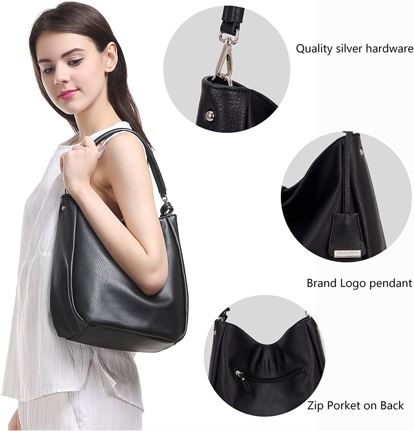 MATERIAL: Soft and Supple waterproof Vegan Leather hobo bags for women.Sturdy and Wipe clean easily!Gorgeous SILVER hardware accents it chic and fashionable.