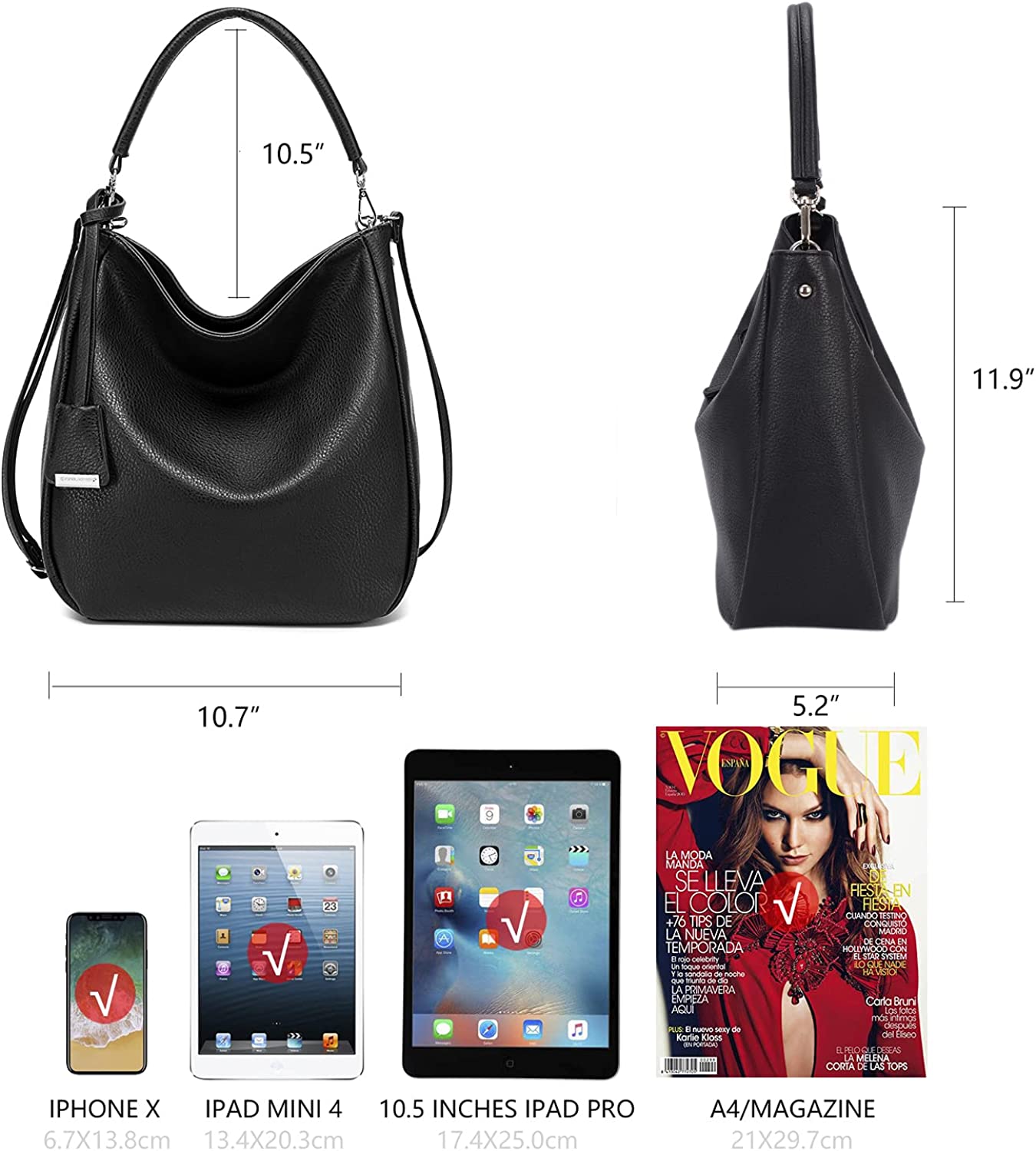 DIMENSION:Medium Size 10.7"(L)x5.2"(W)x11.9"(H) Big Size 12.3x6x13 Roomy and Capacity bags for women;2 Detachable Straps.52.8" Adjustable long shoulder strap.Lightweight satchel bags for women:M 1.32LB L 1.76LB