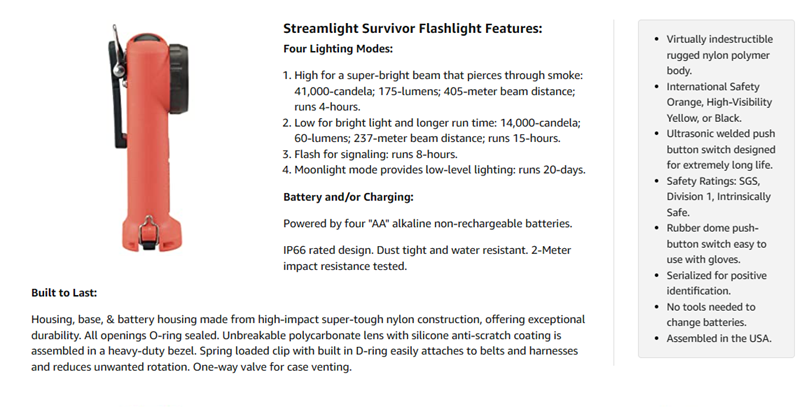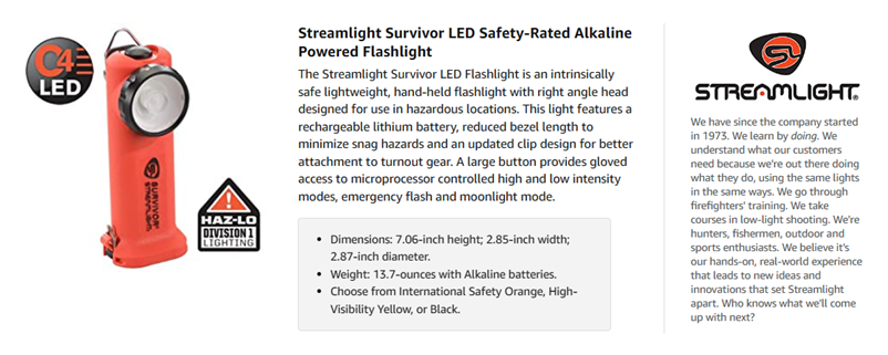 Included Components‎Streamlight Survivor Firefighter Right Angle Light