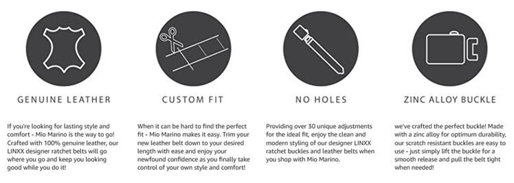 • NO MORE HOLES - Marino's leather belt provides 38 unique adjustments for an extremely comfortable fit. Easy removable buckle allows you to cut the ratchet belt to your ideal size to give a primmer and custom-tailored appearance!