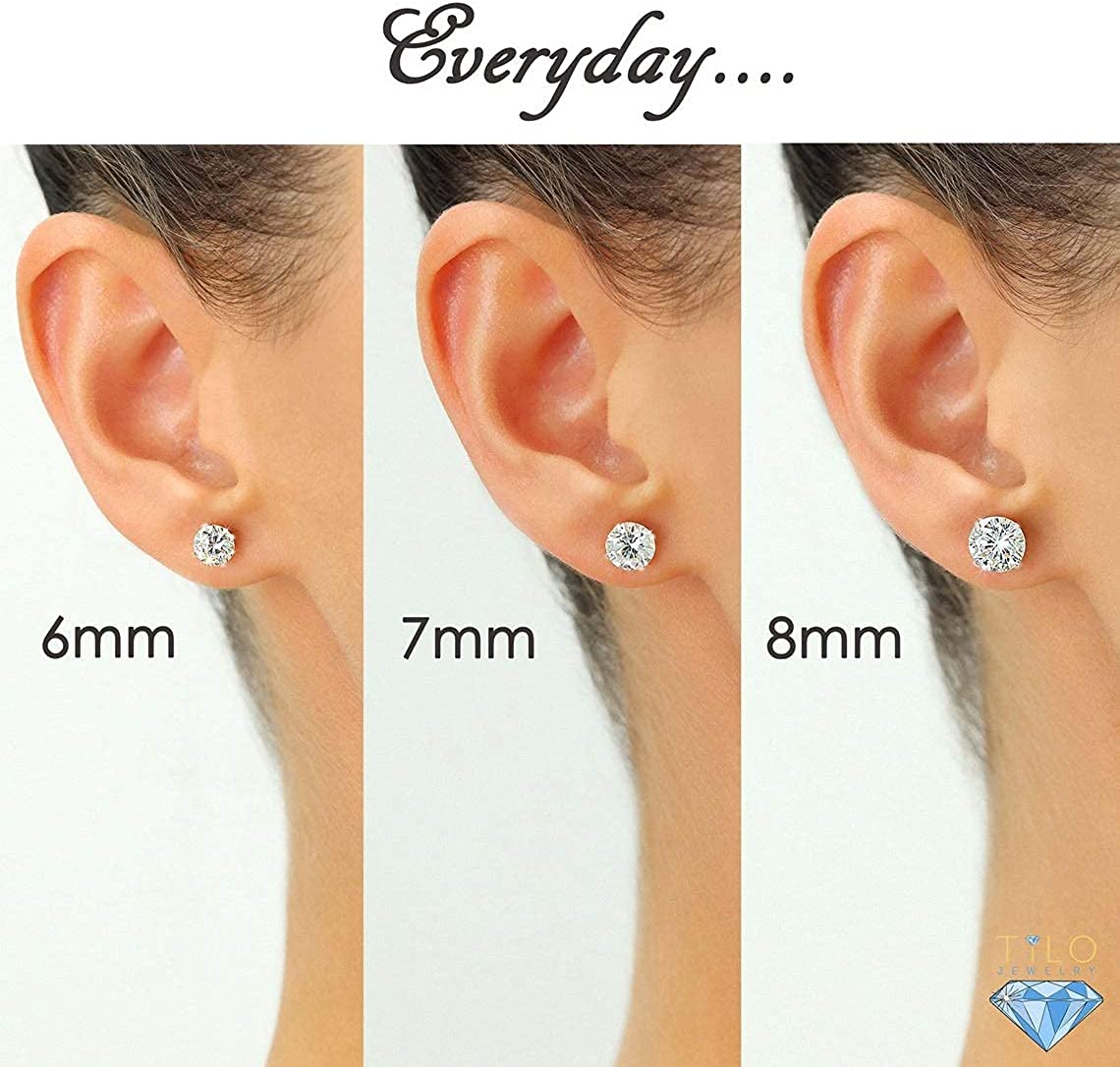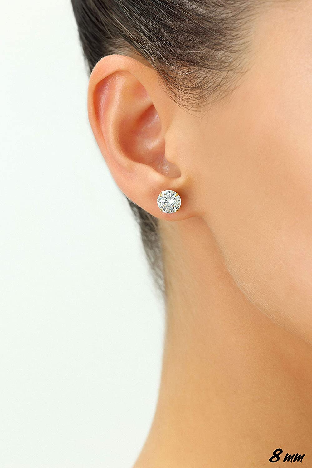 • Size: 8mm Solitaire Sparkling Cubic Zirconia Stud Earrings with 4-prong Basket Setting. The 8mm Size CZ is on the bigger side if you are looking for the large stud earring look.