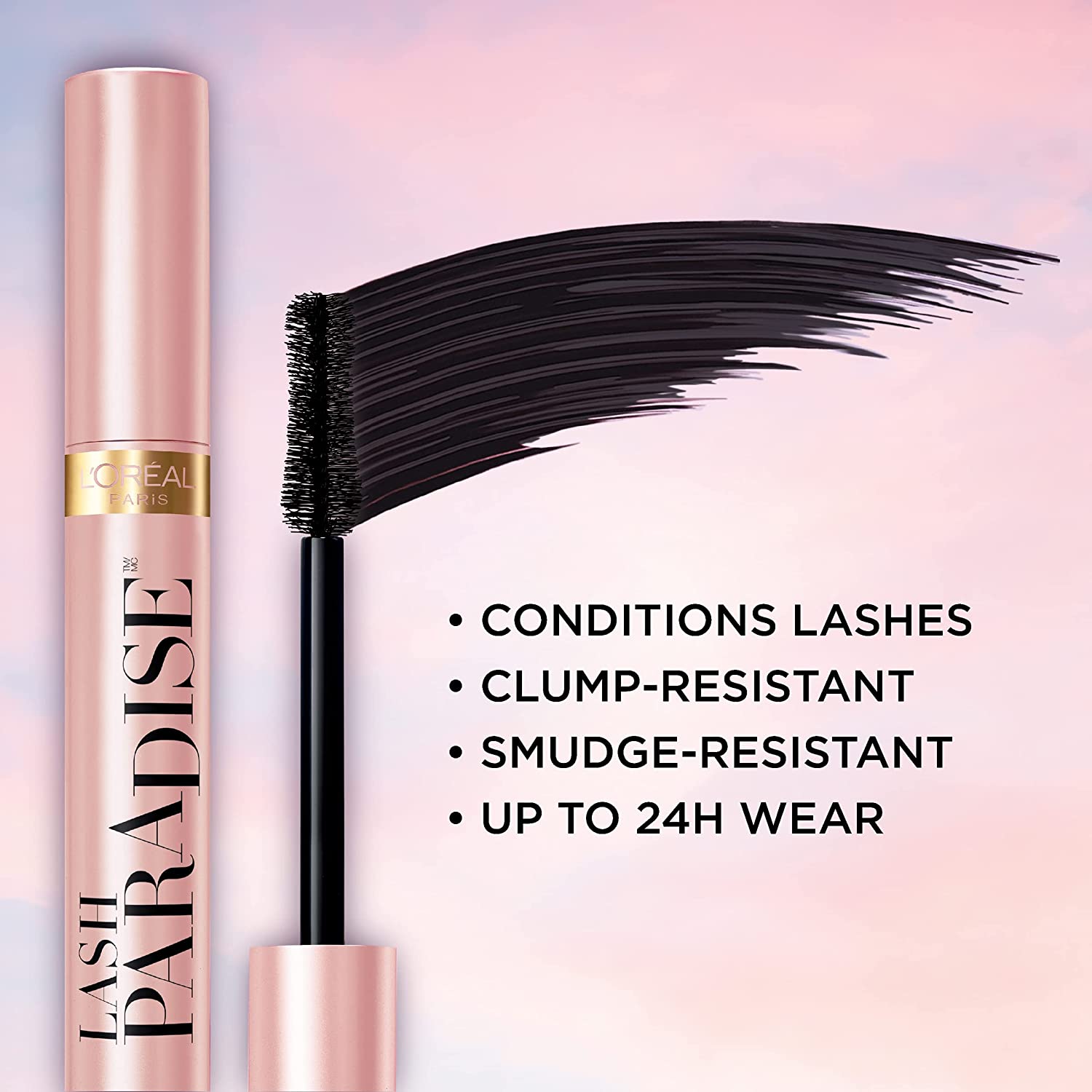 L'Oreal Paris Voluminous Makeup Lash Paradise Mascara, Voluptuous Volume, Intense Length, Feathery Soft Full Lashes, No Flaking, No Smudging, No Clumping, Blackest Black, 1 Count