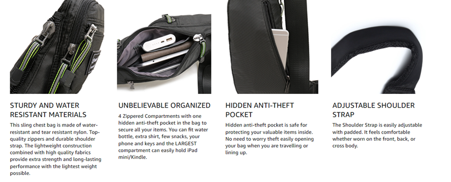 - ✅【Multiple storage purpose sling bag】Large main compartment with inner open cellphone pouch is perfect for iPad Mini with cover, Kindle, Small notebooks, Large cellphone. 4 front zippered pockets are great for various of small items.