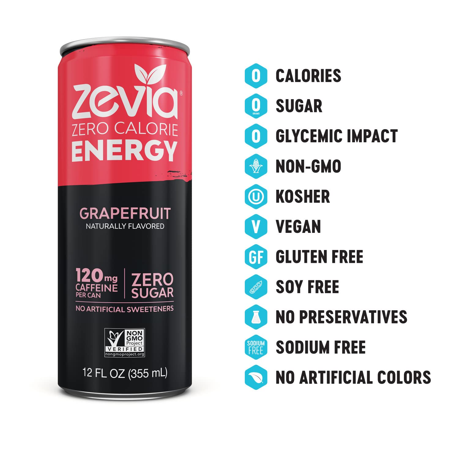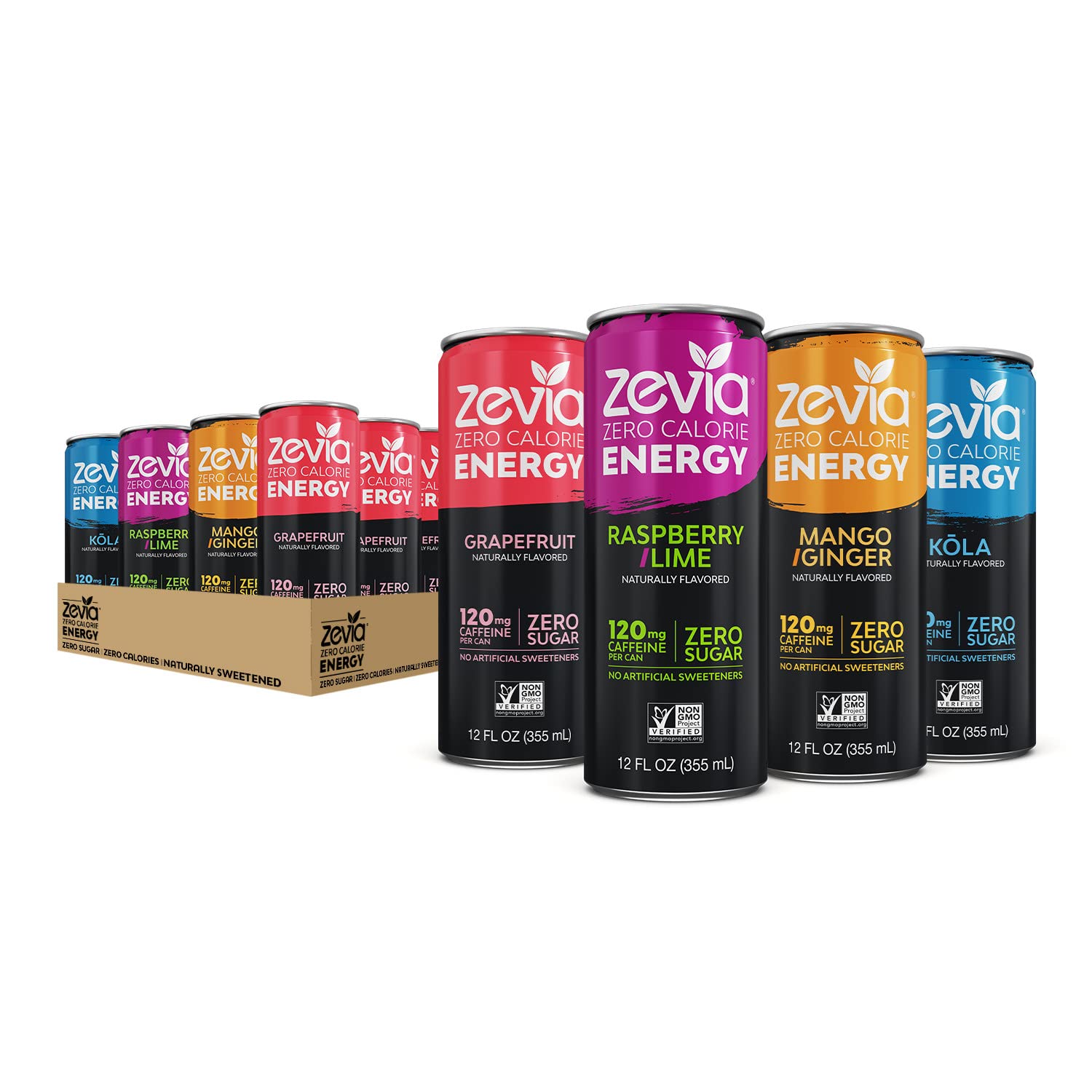 Premium Product: Zevia Energy is always: zero calorie, sugar free, clear in color, gluten free, Non GMO Project Verified, kosher and vegan; power up with any flavor or try our variety pack; with zero calories, Clean Ingredients, & 120 mg of caffeine