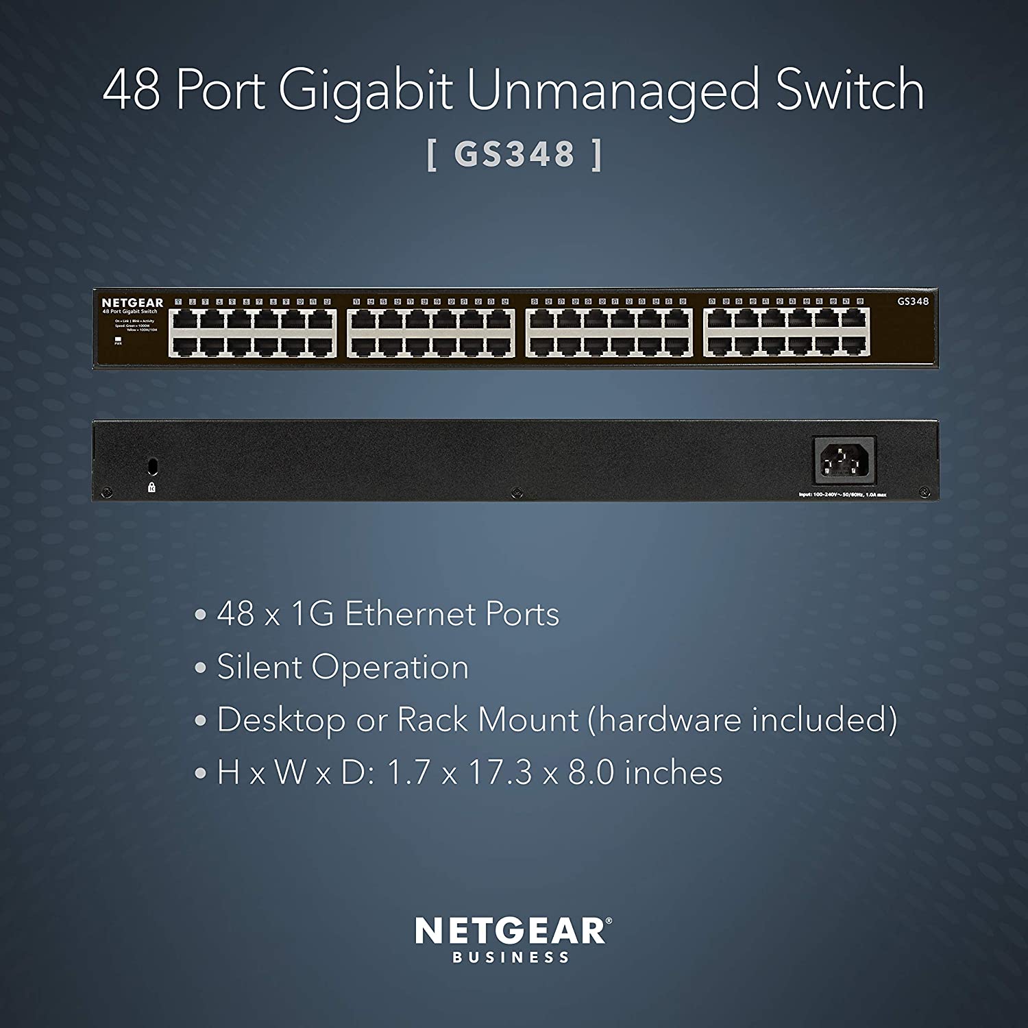 NETGEAR 48-Port Gigabit Ethernet Unmanaged Switch (GS348) - Desktop or Rackmount, Silent Operation