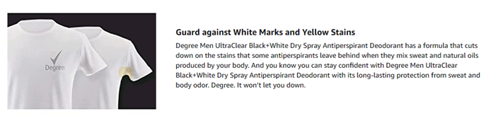 Degree Men UltraClear Black + White Antiperspirant Deodorant Dry Spray with long-lasting MotionSense technology goes on instantly dry for a cleaner feel and is specially designed to keep your clothes looking new. No white marks on black clothes and no yellow stains on white clothes. You'll look great all day and free from deodorant stains. This antiperspirant for men has a formula that cuts down on the stains that some antiperspirants leave behind when they mix with sweat and natural oils produced by your body. It also provides 72-hour sweat and odor protection and goes on instantly dry to keep you moving and free to live life to its fullest. This antiperspirant deodorant spray also contains Degree's innovative MotionSense technology. It works like this: unique microcapsules sit on the surface of your skin. When you move, friction breaks those microcapsules, and they release more fragrance. So, every time you move, Degree keeps you fresh and free from odor. At Degree, we're doing everything we can to help keep the planet moving. That's why our antiperspirant deodorant dry spray cans are made with infinitely recyclable aluminum.