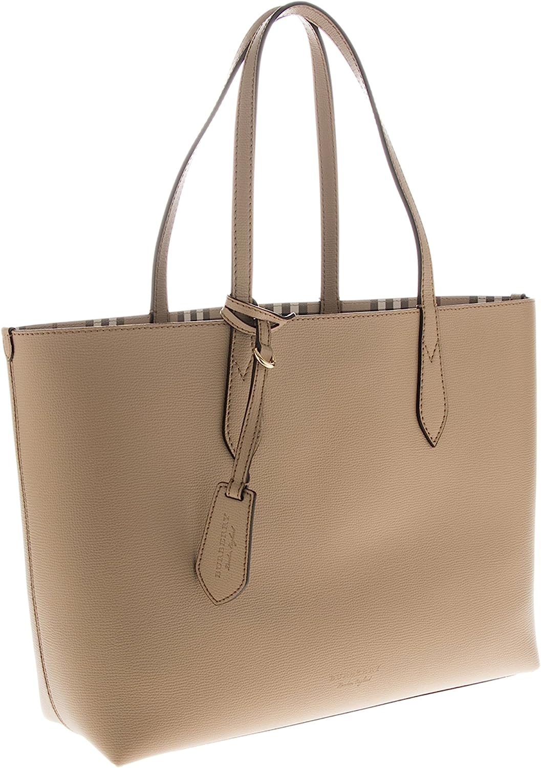 Burberry Women's Medium Reversible Handbag in Haymarket Check Camel
