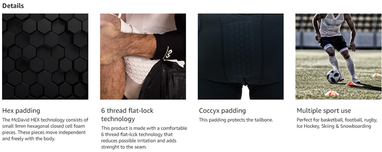 Hex hip pads feature newly engineered shape for more precise coverage