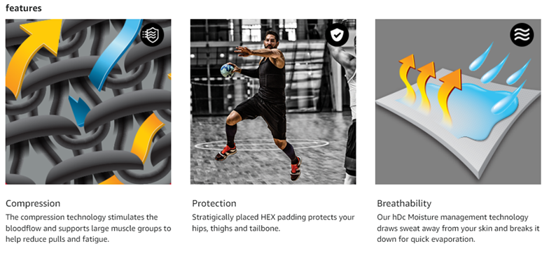 Compression technology supports large muscles to help reduce pulls and fatigue
